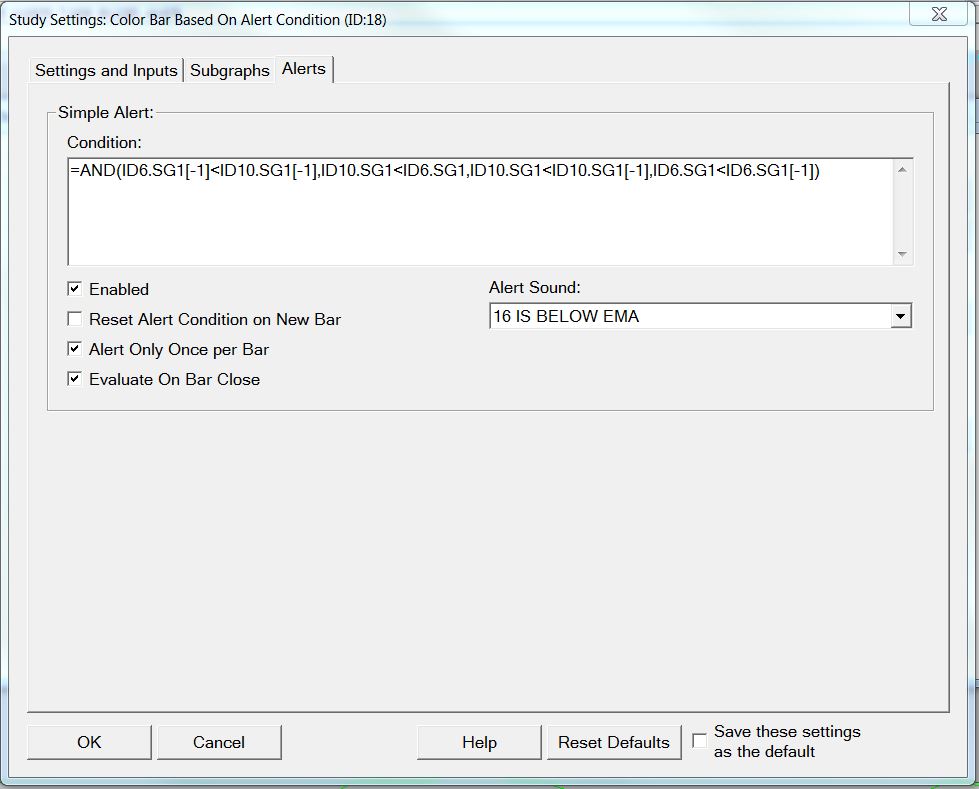 See if this works. In my example ID6=16Hull and ID7=25Hull. ALERT#1 =OR(AND(ID6.SG1>ID6.SG1[-1],ID7.SG1>ID7.SG1[-1]),OR(AND(ID6.SG1>ID6.SG1[-1],ID7.SG1<ID7.SG1[-1]))) ALERT#2 =OR(AND(ID6.SG1<ID6.SG1[-1],ID7.SG1<ID7.SG1[-1]),OR(AND(ID6.SG1<ID6.SG1[-1],ID7.SG1>ID7.SG1[-1]))) |