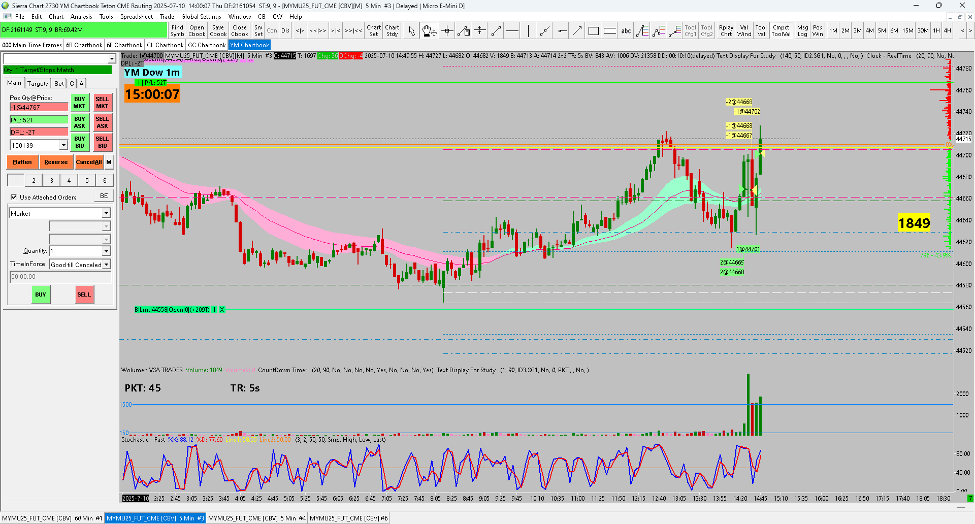 All of this is because you are not receiving real-time market data. And you are seeing delayed prices. Activate the exchange or exchanges you need here: https://www.sierrachart.com/UserControlPanel.php?page=DenaliDataFeed The change will go into effect in about three minutes. Sierra Chart Support - Engineering Level Your definitive source for support. Other responses are from users. Try to keep your questions brief and to the point. Be aware of support policy: https://www.sierrachart.com/index.php?l=PostingInformation.php#GeneralInformation For the most reliable, advanced, and zero cost futures order routing, use the Teton service: Sierra Chart Teton Futures Order Routing Date Time Of Last Edit: 2025-07-10 17:10:07