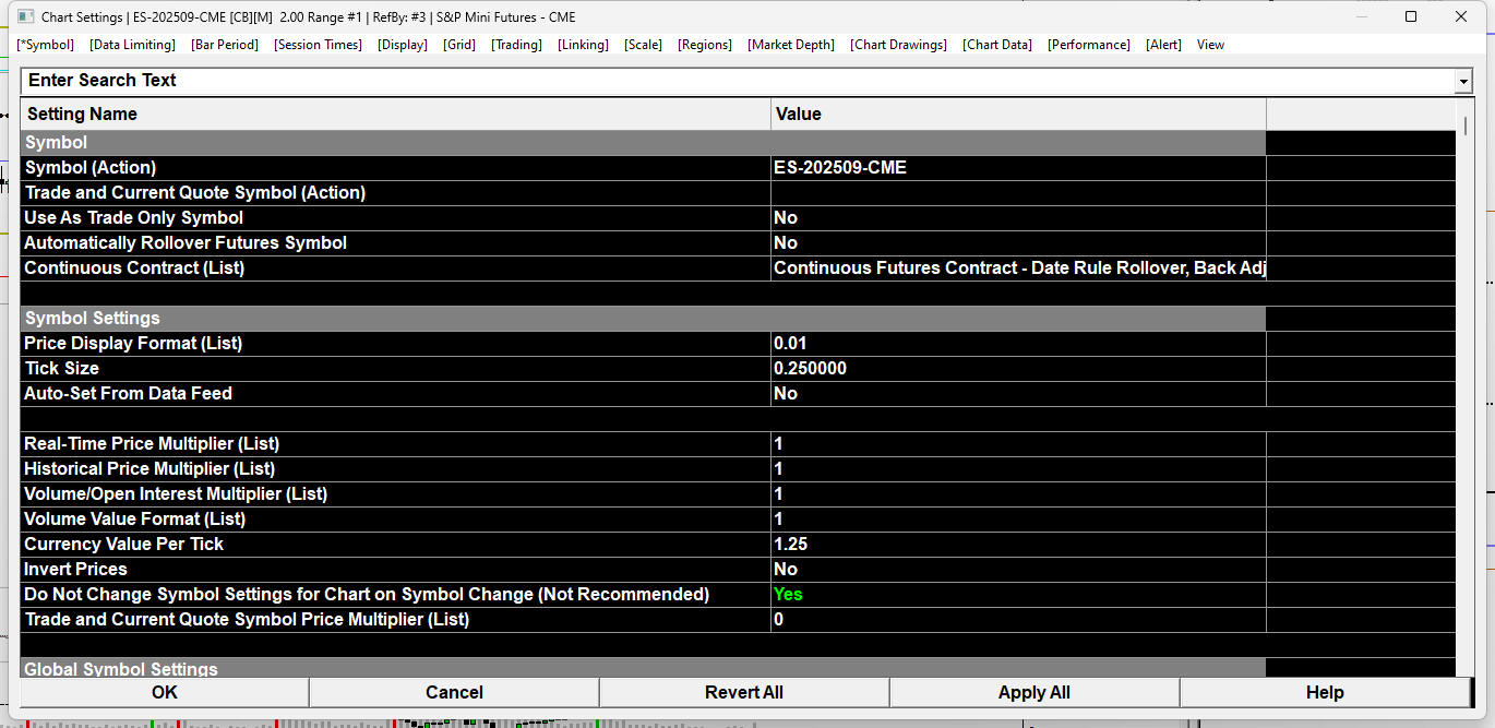 Enter the appropriate MES symbol in the "Trade and Current Quote Symbol" field and set the option for "Use as Trade Only Symbol" to "Yes". Refer to the following: Chart Settings: Trade and Current Quote Symbol (text box) (Chart >> Chart Settings >> Symbol >> Symbol menu) For the most reliable, advanced, and zero cost futures order routing, use the Teton service: Sierra Chart Teton Futures Order Routing |