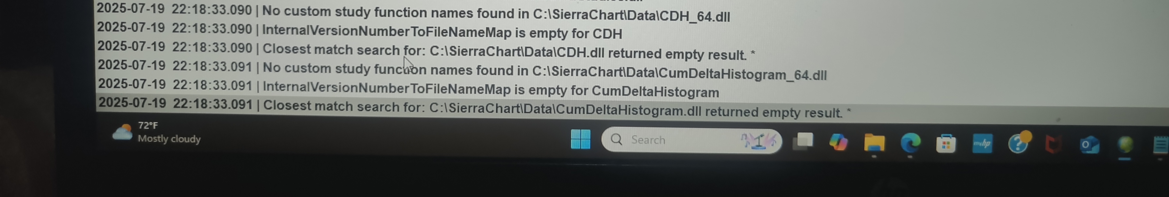You have something wrong with your code from which the .dll was created. Refer to the information here: Advanced Custom Study Interface and Language (ACSIL): Step-By-Step Instructions to Create an Advanced Custom Study Function For the most reliable, advanced, and zero cost futures order routing, use the Teton service: Sierra Chart Teton Futures Order Routing |