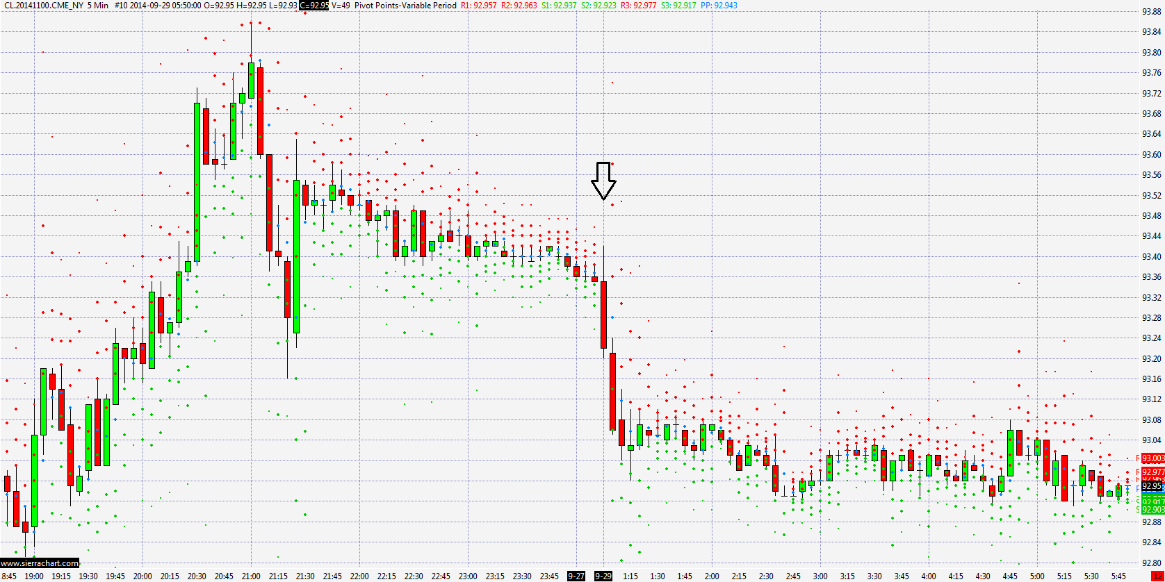 The study name is "Pivot Points - Variable Period" and here are the settings: Time Period Type: Minutes Time Period Length: 5 Formula Type: 0 Minimum Required Time Period as %: 25 Round to Tick Size: No Display Debugging Output: No Forward Project Pivot Point Lines: No Number of Days to Calculate: 1000 Auto Skip Period of No Trading: Yes Number of Forward Project Bars: 20 Please see the attached images. |