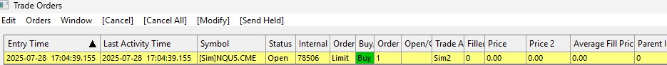 Is there maybe a way to send a buy or sell signal other than an order through DTC? Maybe that "UserMessage", if there is a way to capture/receive that on the ACSIL side? That way I would have full control over the order type and order management within SC. I would have BE and trailing and any other custom oders I wrote in ACSIL. That would be ideal. Worst case I could "listen" for a market order with an ACSIL study and then attach order brackets to that and apply management logic. Just a signal would be cleaner despite a tiny bit more latency maybe. Date Time Of Last Edit: 2025-07-29 04:13:40