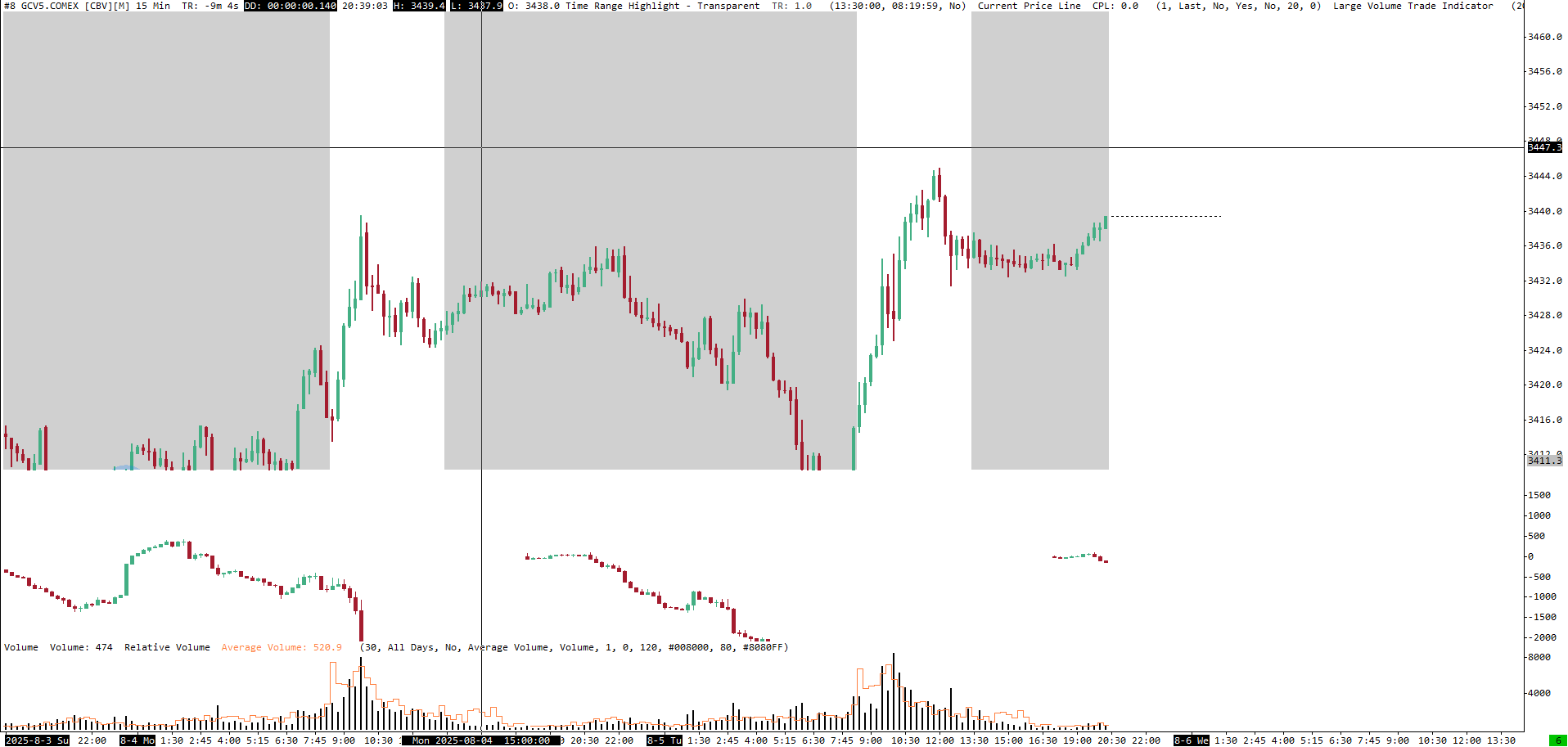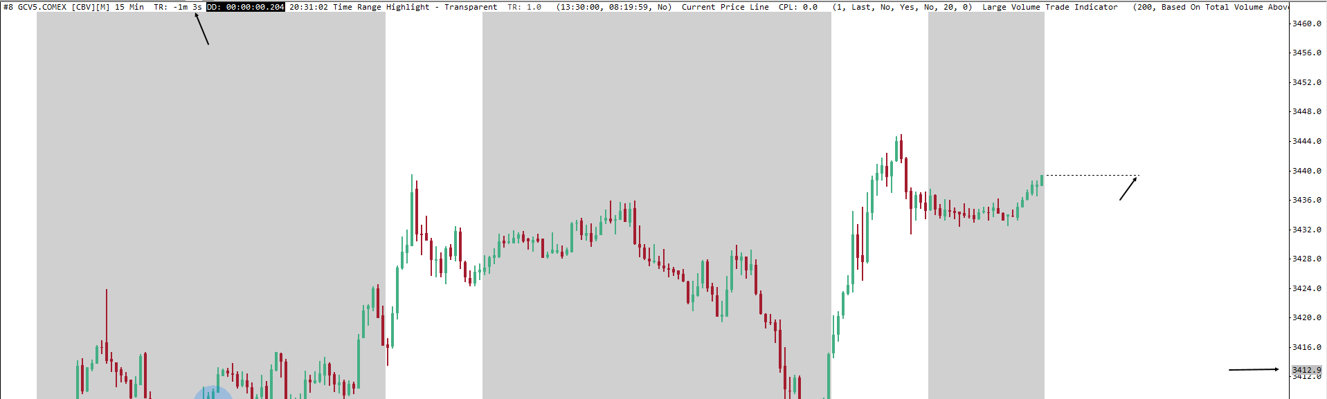 For some reason the Symbol Settings for GC are missing the V contract for the rollover contracts. We will look into this, but in the meantime, do the following: - Select "Global Settings >> Symbol Settings" - Find the symbol in the list on the left for GC?#.COMEX and select it in that pane - On the right top, scroll down through the list of symbol settings for that symbol and find the entry for "Continuous Contract Months". Select this item by clicking on it. - Just below the settings will now show options to make changes. In the box for "Custom", select the V contract to add it to the list. - Make sure the option for "Use Custom Symbol Settings Values" in the upper left corner is enabled (has a checkmark). - Select OK to close the window. - Go to the chart that has the issue and select "Chart >> Reload and Recalculate That should take care of it for you. For the most reliable, advanced, and zero cost futures order routing, use the Teton service: Sierra Chart Teton Futures Order Routing |