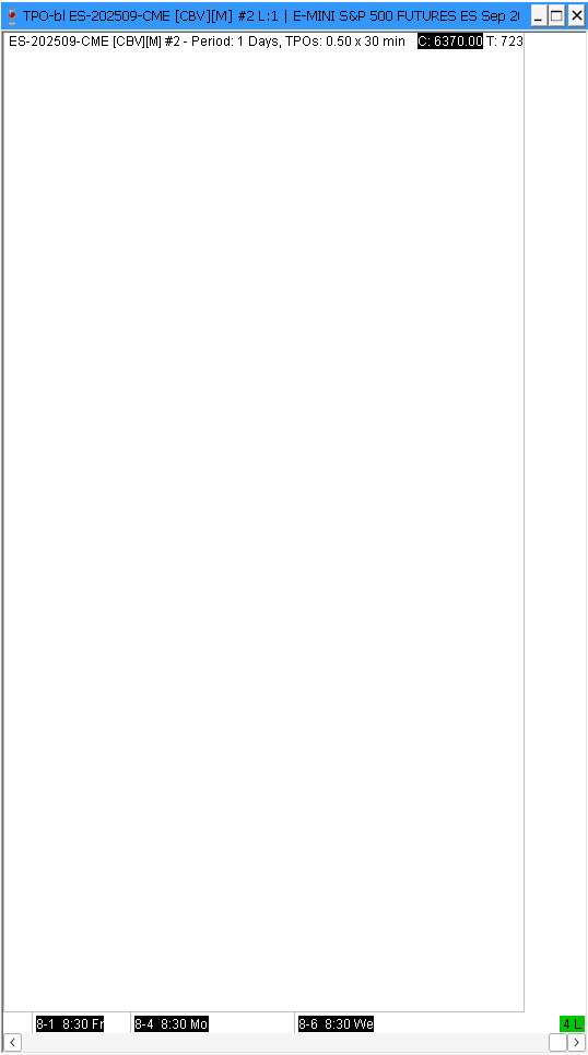SC2781 updated from SC2776 A chartbook with a TPO chart was loaded at the beginning of today's RTH. Everything looked fine. TPO chart default size is 4L. The chartbook was running in the background for the complete RTH session. After the RTH session I brought the chartbook to the front and the TPO chart area was empty, including the scale area. I experimented and found: - With 3L the chart worked normal. - With 4L the chart and scale is gone, but when I maximize the window, it works normal. When I minimize it again, the chart and scale again disappears. - With 5L the chart looks normal at first, but the scale shows strange behavior: Regardless of the setting of "Interactive Scale Move" or "Interactive Scale Range", the function is always move. It is impossible to get the range function, either via the menu or via CTRL key. - With 6L the chart works normal. - With 7L, it is the same as 4L. The problem is reproducible after closing and reloading the chartbook, and also after closing and restarting SC. I have the same chartbook for ES, MES, NQ, MNQ. The problem only shows for ES and MES, not for NQ, not for MNQ. |