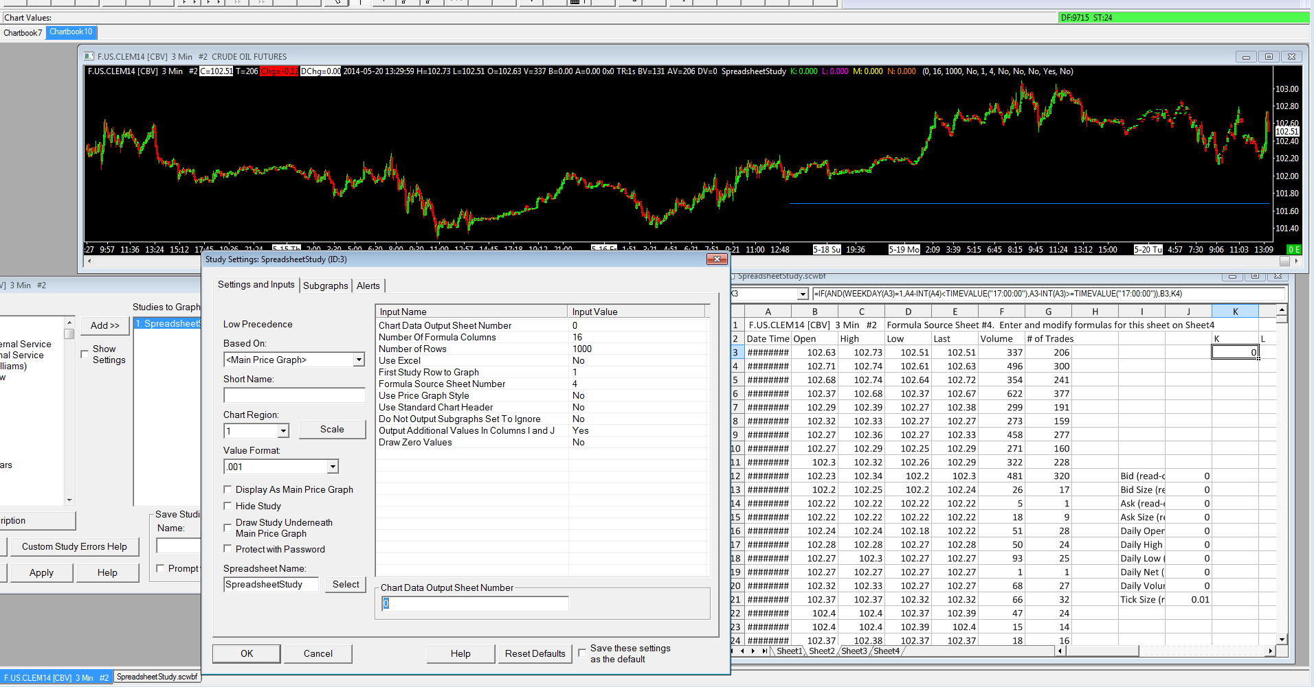 I just tried to recalculate and nothing is happening, the weird part is =IF(AND(WEEKDAY(A3)=2,A4-INT(A4)<TIMEVALUE("08:30:00"),A3-INT(A3)>=TIMEVALUE("08:30:00")),B3,K4) worked for me the first time I was punching it in, then I tried the new formula given for A Sunday Line and that didn't work at all, now that I'm going back and punching the old one in , neither of them work now. I have been trying to use different markets and charts and I'm getting nothing as far as any lines being drawn. |