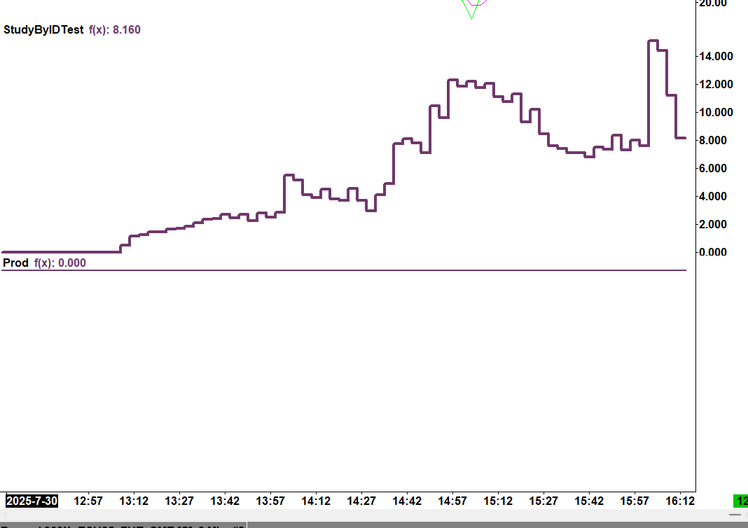 I substituted sc.GetStudyArraysFromChartUsingID with sc.GetStudyArrayUsingID in the TestStudy and it correctly rendered the output of the study. I then copied and pasted this code block into the Prod study and it didn't render the output. |