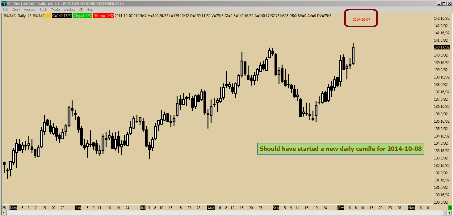 I'm not seeing correct sessions on my daily charts. For example, if you take a look at the Bonds daily chart, it shows the current daily candle is still forming even though we have moved to next day's candle. It should have started a new daily candle as of 1800 hrs New York Time. How can I correct this ? Thanks for your help |