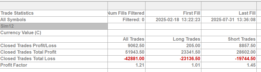 Hi, I have several SIM accounts to segment different experiments. An experiment is isolated to a single instrument and single SIM account. The account is reset completely at the start of the backtest (i.e. all activity across all dates on account). I've noticed when cross referencing different experiments and thus SIM accounts that the numbers change though no further activity has occurred on the account. The profit and loss section is different though the first fill and last fill times are still the same. How might this be occurring? |