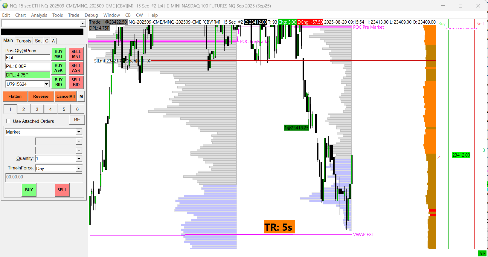 Hello there, I know that there are functional issues with Interactive Brokers, so if there is no easy fix it is alright, just wanted to ask anyway. 1. Concerning P/L display: as you can see in the screenshot i opened a position with 1 mnq that went a little bit against me. However, the P/L in the trade window doesnt show anything. Is there a fix for that? (here I may also add that the DPL number is way off from the actual number in the trader work station that does reflect the correct number 2. Second, whenever I open a position the line, that indicates the average position price only appears for half a second and then disappears. Is this a common issue? |