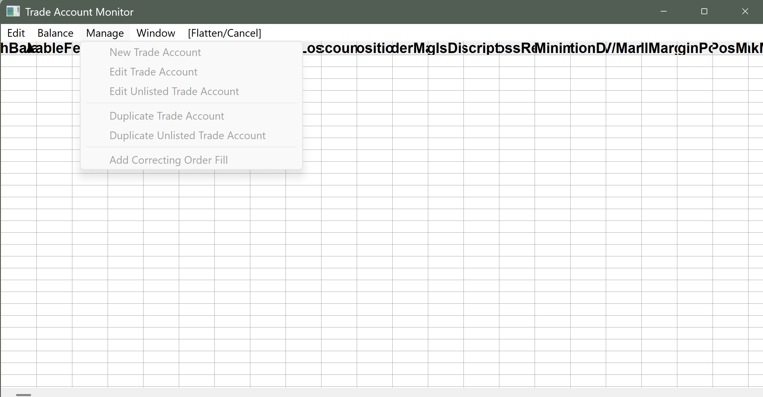 Hi, I'm unable to select any options under "Manage" Tab in the Trade Account Monitor. Was hoping to set up things like Max Trades; Max Losses, etc.