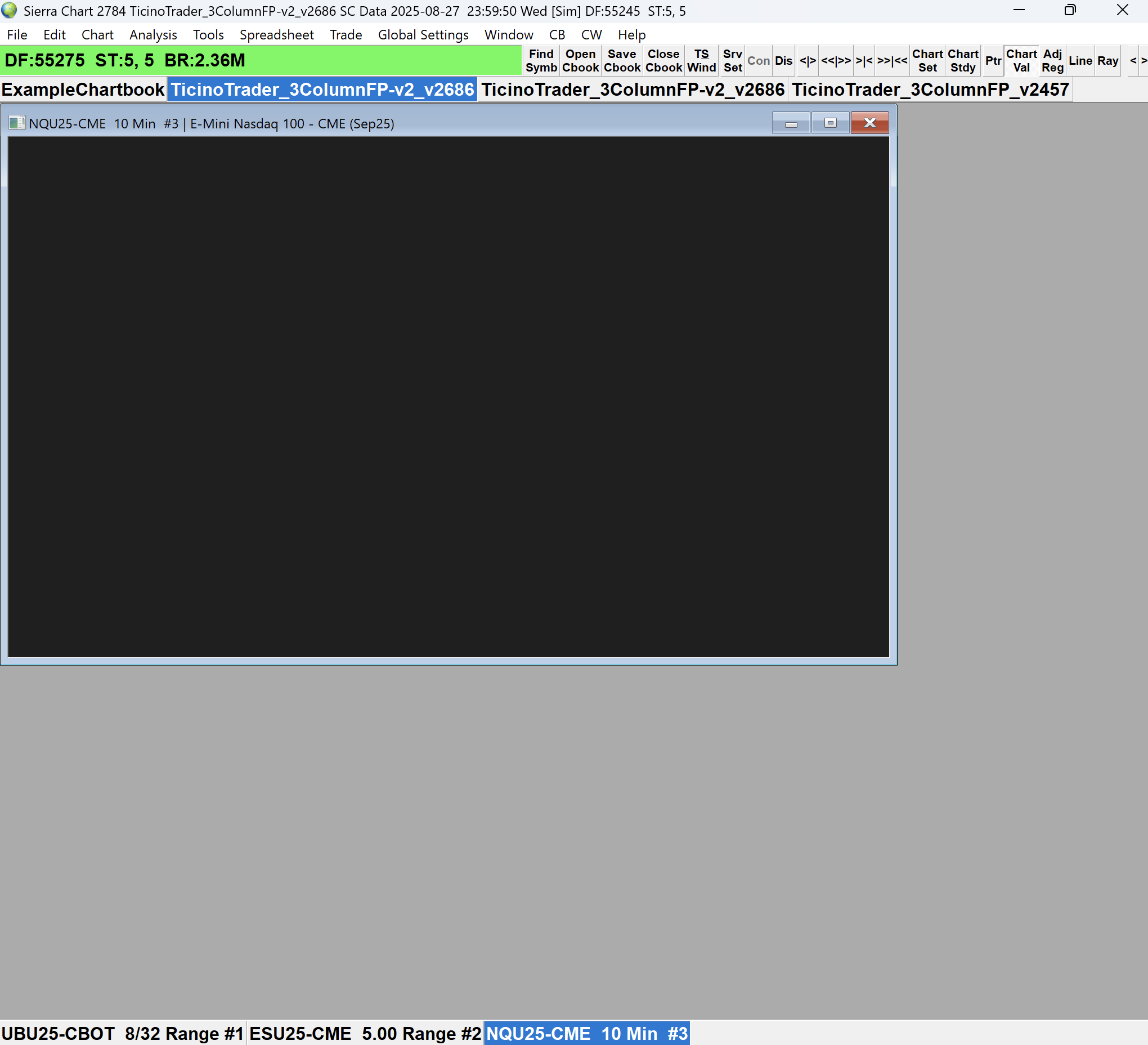Hi! I am using the trial Sierra Chart and have downloaded a compatible chart from Ticino Trades. Once I open the .cht file (TicinoTrader_3ColumnFP-v2_v2686.Cht) in SC, it does not properly open, only showing black screens where the charts should be. I am wondering if this is because I'm on the free trial of Sierra Chart or if it is a problem with my Windows 11 settings or Ticino Chart? Appreciate your help!