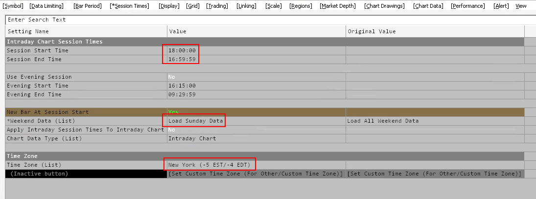 See the attached screenshot for the session settings you should use on your intraday-data-based daily equivalent chart (1-0-0). These are the settings SC support recommended a long time ago. They will automatically merge the Sunday evening session with Monday’s bar and produce historical daily-equivalent charts. However, there are still two issues that cannot be resolved: - The close price of historical daily data is always the settlement price, except for the current developing bar. - On holidays, when there is an early halt, there is usually no settlement. Because of that, the partial short session will be missing from the historical daily data. The data will be merged with the next session’s data, but no individual bar will appear on the chart for that short session. So the intraday data based daily chart will have an extra bar. Hope this helps. |