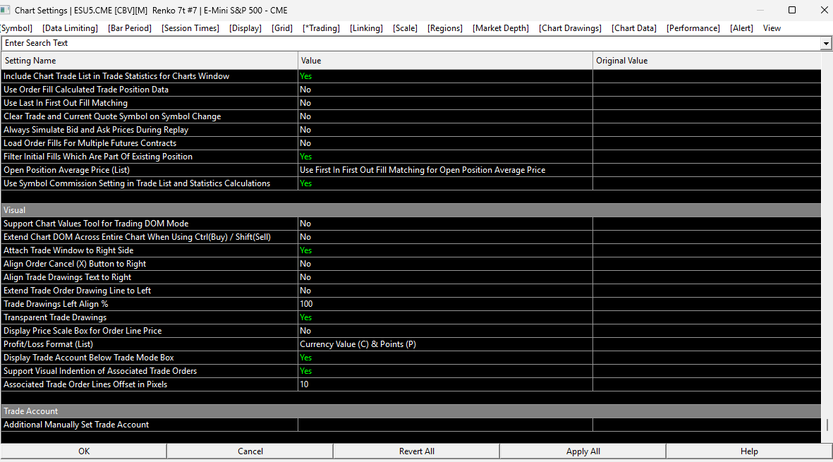 Refer to the following: Global Trade Settings Windows: Attached Order P/L When Modifying (Global Settings >> Chart Trade Settings >> Working Orders >> Working Orders - Display) For the most reliable, advanced, and zero cost futures order routing, use the Teton service: Sierra Chart Teton Futures Order Routing |