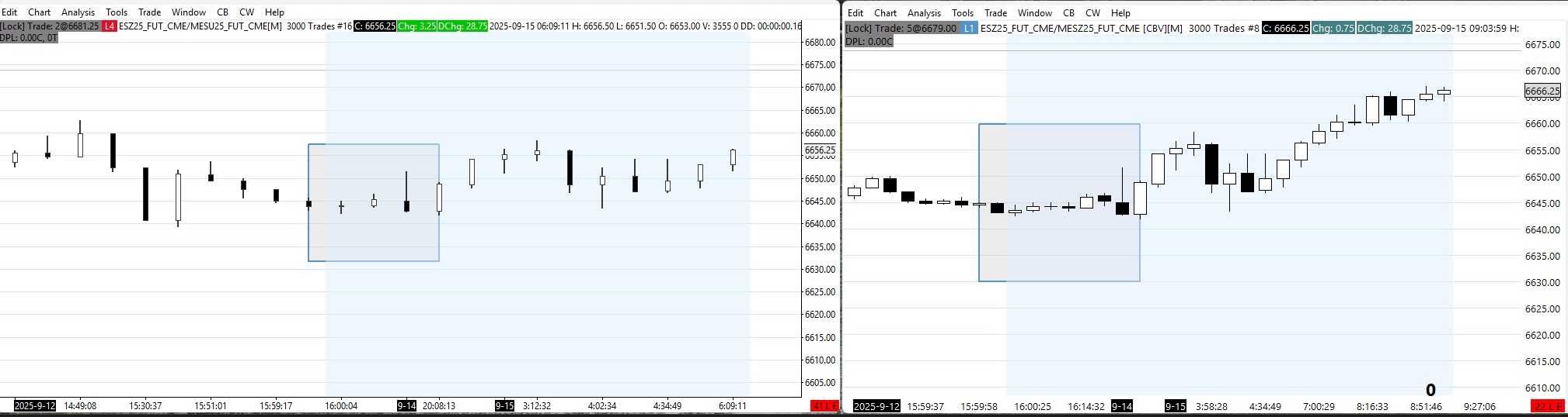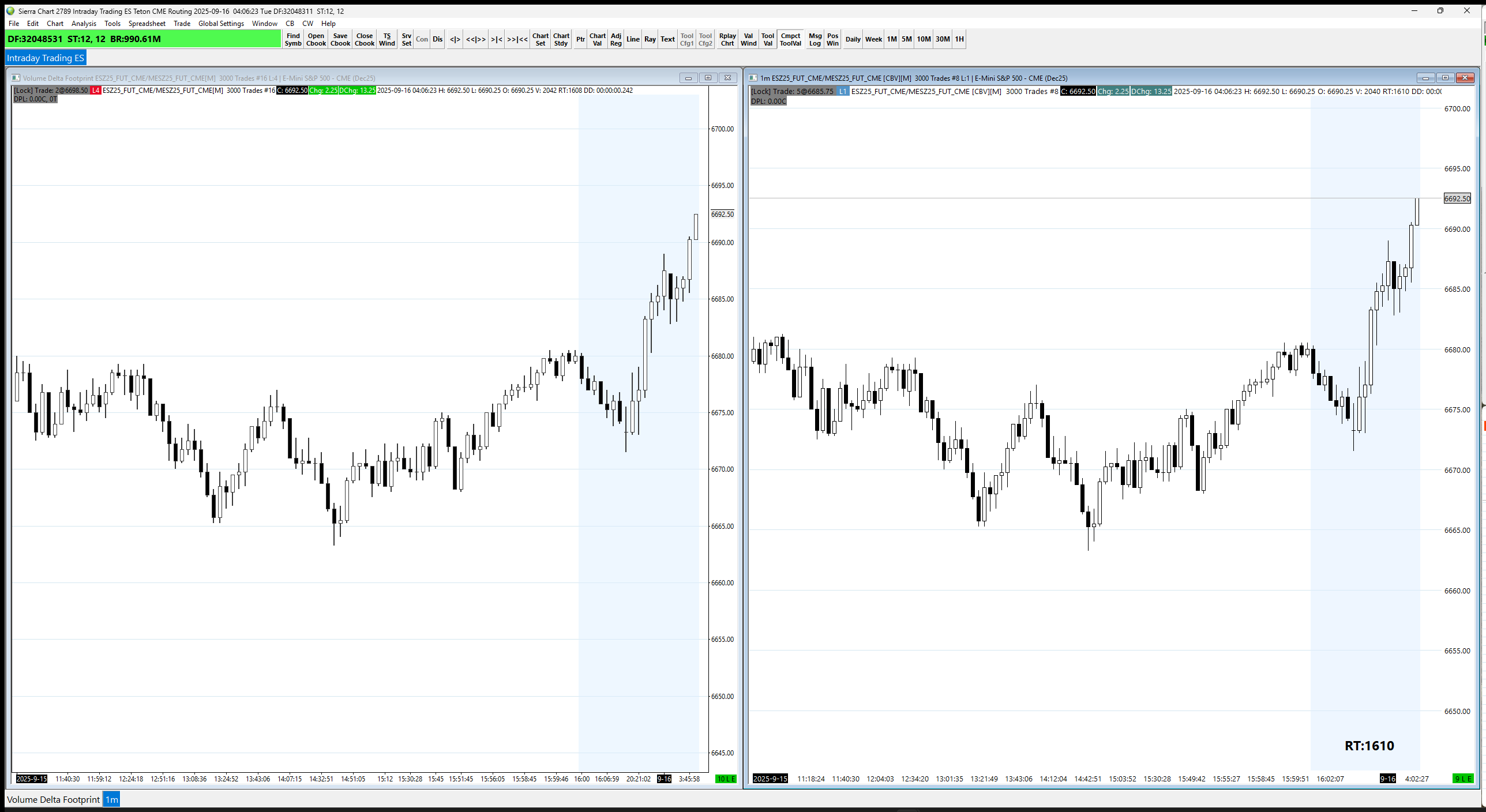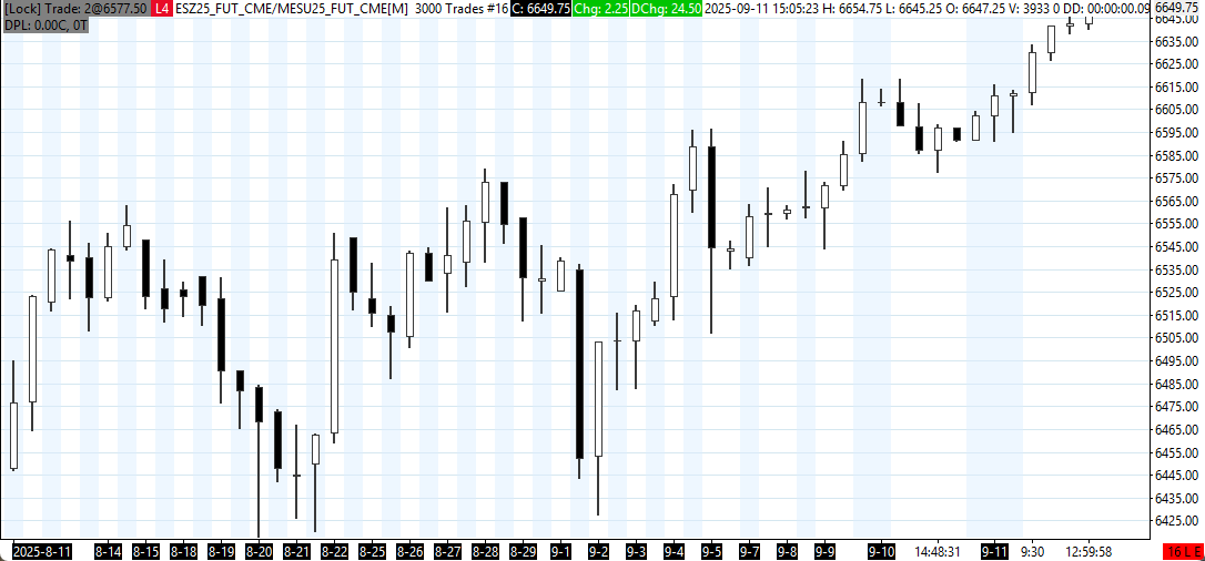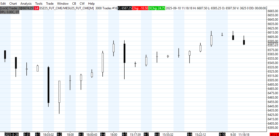 In the one image where you show both the charts together, the charts are too different for us to understand how to align the information. Please get the charts more alike in terms of the bar spacing and the scaling so these can be more easily compared. Then get these two charts displayed together and get us an image by following these instructions: Support Board Posting Information: Attaching or Posting a Screenshot/Image (Optional) Also, we do not understand what you mean by "the other is and overlay (chart #16)". What exactly does this mean for chart #16? It has to have a core symbol in it before there can be an overlay. Also, we want to point out that on Chart #16, the "Trade and Current Quote Symbol" did not rollover, so it is showing as "MESU25_FUT_CME". You should update this to the Z contract. For the most reliable, advanced, and zero cost futures order routing, use the Teton service: Sierra Chart Teton Futures Order Routing |