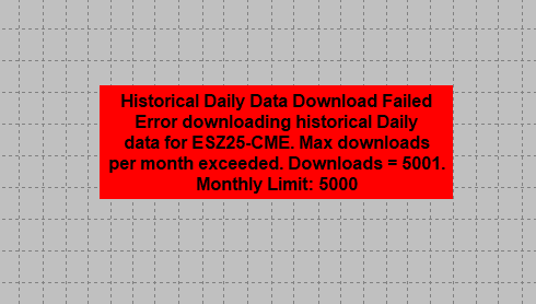 Activate additional historical daily data downloads here: https://www.sierrachart.com/UserControlPanel.php?page=ServicesActivation#AdditionalHistoricalDownloads To avoid this error. Sierra Chart Support - Engineering Level Your definitive source for support. Other responses are from users. Try to keep your questions brief and to the point. Be aware of support policy: https://www.sierrachart.com/index.php?l=PostingInformation.php#GeneralInformation For the most reliable, advanced, and zero cost futures order routing, use the Teton service: Sierra Chart Teton Futures Order Routing Date Time Of Last Edit: 2025-09-18 16:12:31