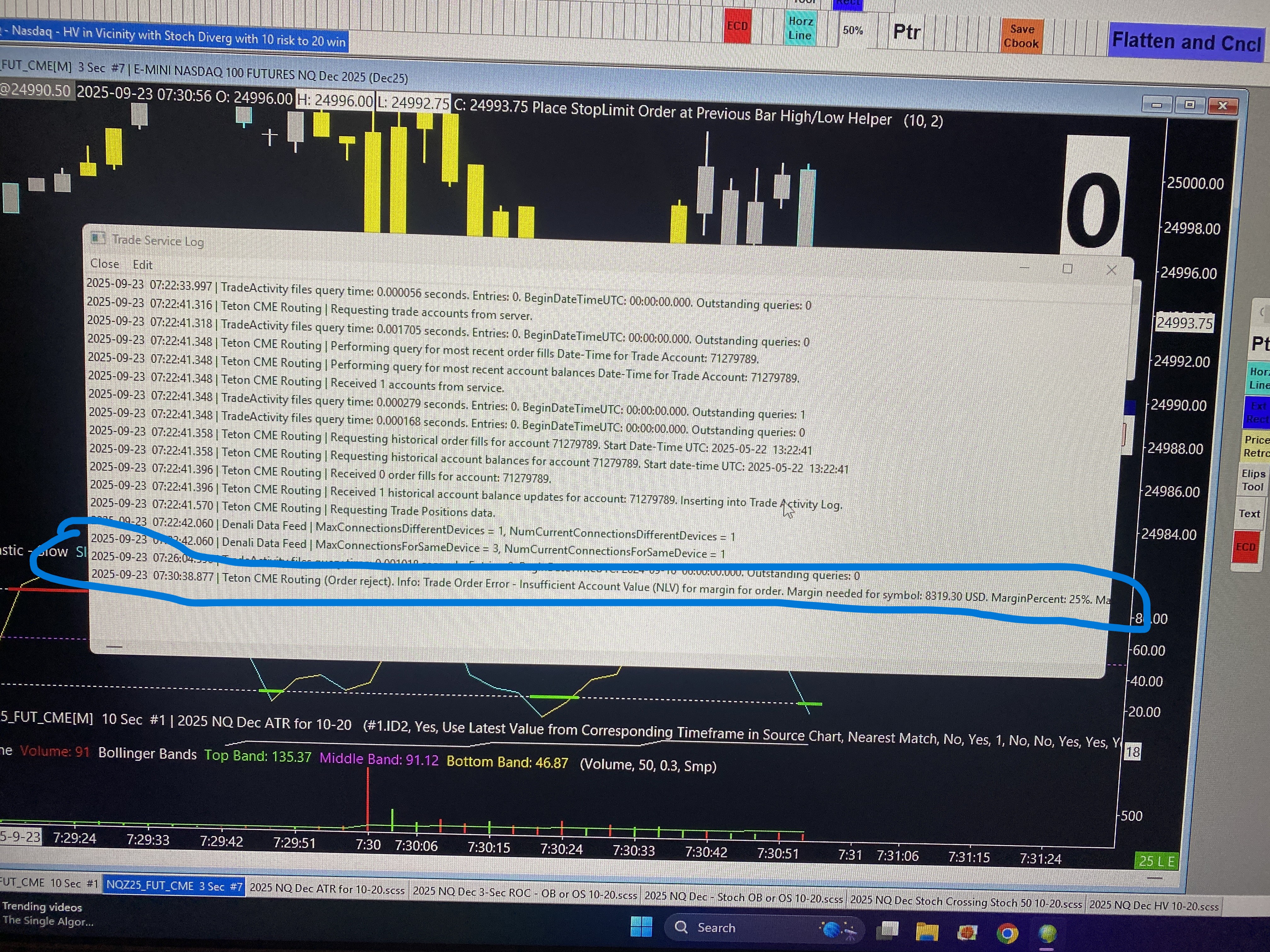 I funded my account with m clearing firm (Ironbeam) with $10000. I tried to place a live order today for one contract of the Mini-NQ (December contract). My broker is Deep Discount Brokerage and their website says intraday Mini NQ Margin is $8929....and I have this amount covered for trading one contract. However, upon order entry via Sierra Chart (using Teton CME Routing) I received a Margin Error message saying that I do not have adequate margin. The SC error message says I need $8319.30....I also have this amount covered. Please see attached jpg file.. How can I get this resolved? Is there an additional setting I need to change? I traded live about a year ago and never encountered this issue.... |