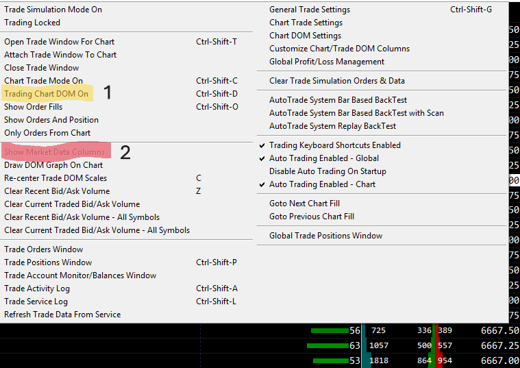 As specified in Post #2, you first need to select "Trade >> Trading Chart DOM On" in order to deselect that option. Then you can select "Trade >> Show Market Data Columns".
