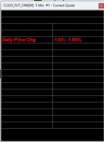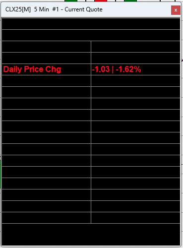 Sorry, we were thinking it was a "Quote Board" and therefore we did not think it was the entire window. We see that it is the "Current Quote Window", which makes more sense with what is showing. The implication is that the color of the text has been set to be "Black", the same as the background. Refer to the following setting that changes the color of the text in that window and make sure it is not set to black: https://www.sierrachart.com/ChartValuesWindowDefaultTextColor For the most reliable, advanced, and zero cost futures order routing, use the Teton service: Sierra Chart Teton Futures Order Routing |