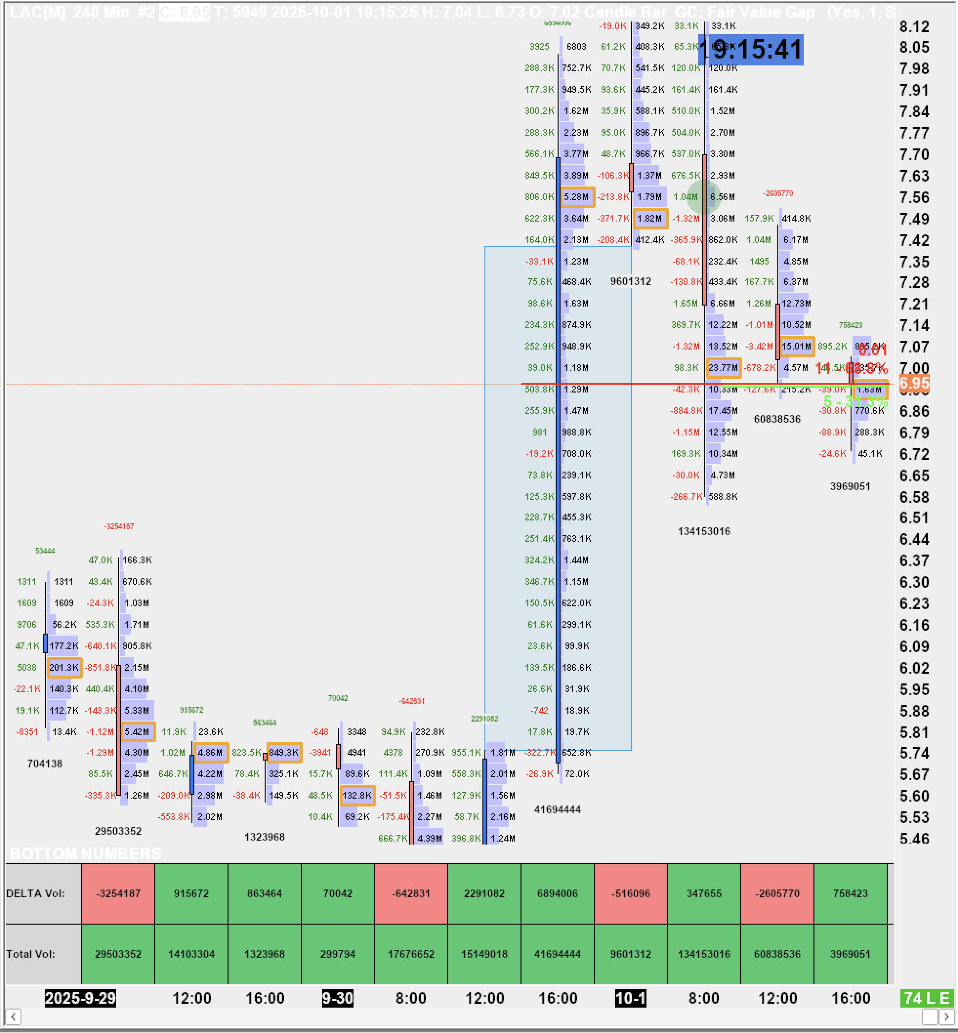 Can someone tell me what these horizontal green and red colored lines are at the current price? I was playing with some graphic settings on DOM chart and must have accidentally added it.