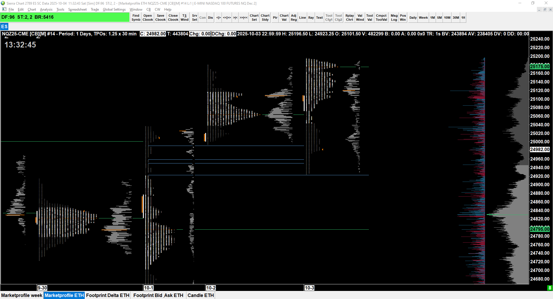 You need to increase the "Letter/Block Price Increment in Ticks" to a higher value to allow you to better view the data. Refer to the following: Time Price Opportunity (TPO) Profile Charts: Letter/Block Price Increment in Ticks For the most reliable, advanced, and zero cost futures order routing, use the Teton service: Sierra Chart Teton Futures Order Routing |