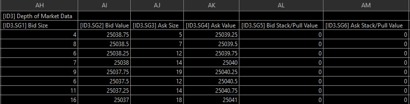 I've added a Depth of Market Study to a chart. I've also added a Spreadsheet Study to the chart. I've set the input "Do Not Output Subgraphs Set To Ignore" to No. In the spreadsheet the columns for Bid Stack/Pull Value and Ask Stack/Pull Value are all 0's. Am I missing a setting or input somewhere?