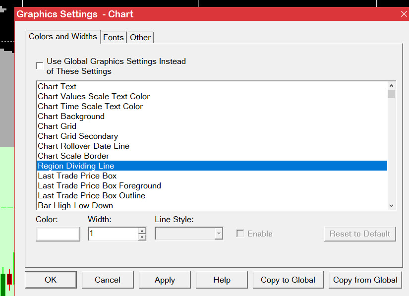 On a single chart or using global settings. Chart -> Graphics Settings -> Region Dividing Line Hope this helps JohnR Date Time Of Last Edit: 2025-10-13 17:32:57