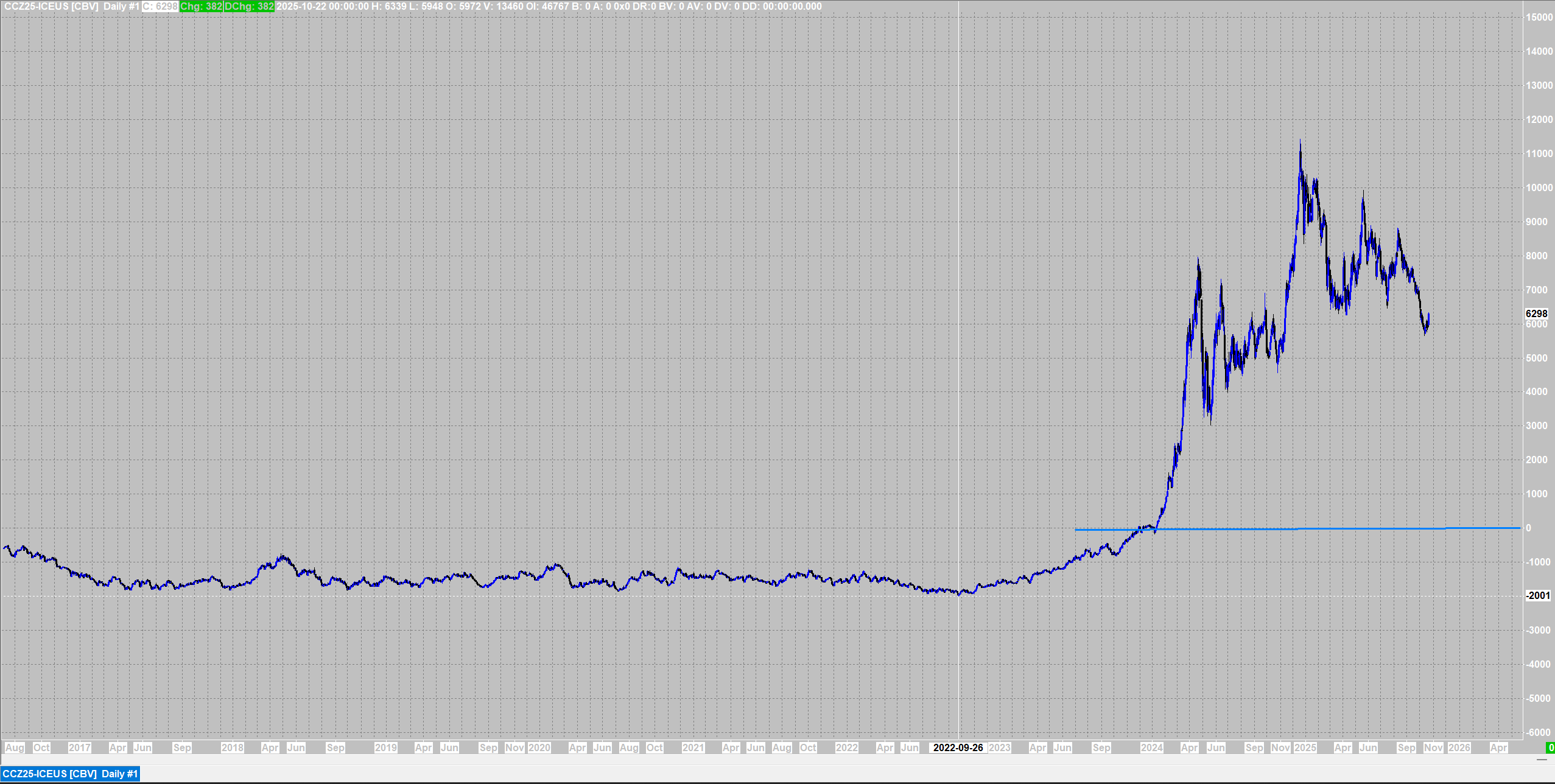 Hello, I'm using volume based back adjusted rollover method for continuous charts, and the prices for COCOA (ticker CC) are being shown negative for past dates (from around feb 2024 to all the way back) why is this happening and how do I avoid this for practical purposes? (attaching the screenshot as well) |