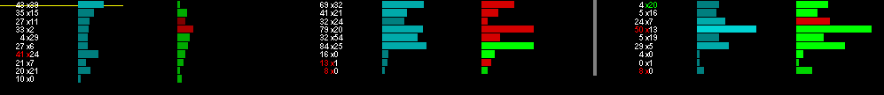 SC2803 Study: Number Bars Column 3 Number Bars Text: No Text Column 3 Background Type: Ask Bid Difference Profile Column 3 Background Coloring Method: Based on AskVol BidVol Diagonal Difference Percentage of Bar Range Column 3 Text Coloring Method: Based On AskVol/BidVol Percentage With this settings, the bottom line bar in column 3 is always a green bar!?!? This does not look correct to me. |
