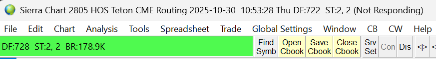 Sierra Chart Support - Engineering Level Your definitive source for support. Other responses are from users. Try to keep your questions brief and to the point. Be aware of support policy: https://www.sierrachart.com/index.php?l=PostingInformation.php#GeneralInformation For the most reliable, advanced, and zero cost futures order routing, use the Teton service: Sierra Chart Teton Futures Order Routing Date Time Of Last Edit: 2025-10-31 04:13:11