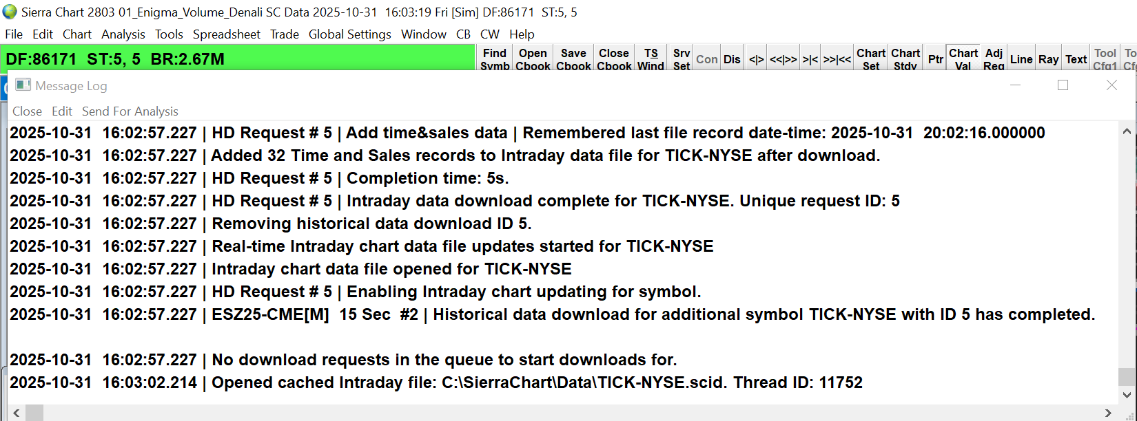 You can close the Message Log at any time, just click the close button (x) in the upper right corner, or select "Close" button at the top of the window. If the Message Log is automatically opening, then this indicates there is an important message in the log. We recommend determining what is causing the log to open. There is an option to force the log to not open automatically, but we do not recommend it, as there is some reason it is opening. Refer to the following: General Settings Window: Never Automatically Open Message Log or Trade Service Log (Global Settings >> General Settings >> Log >> Log) There is also a control for what messages are displayed in the Message Log. Refer to the following: Message Categories For the most reliable, advanced, and zero cost futures order routing, use the Teton service: Sierra Chart Teton Futures Order Routing |