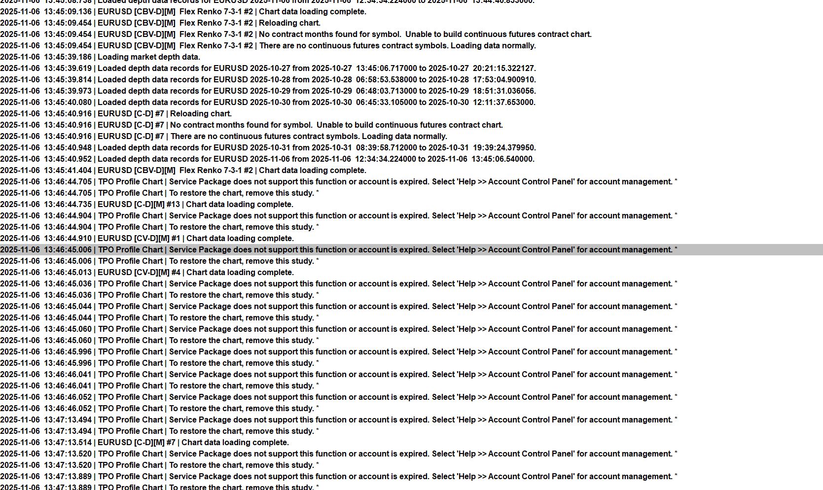 You changed to the "Integrated Standard" package, which does NOT have support for the TPO profiles. You need to be on one of the "Advanced" packages for this. Refer to the information for the packages at the following link: Description of Service Packages and Pricing: Integrated Packages We do see that you have enabled the option to "Evaluate the Highest Available Package" which at this time is the "Integrated Advanced with MBO" package. Therefore, even with being on the "Integrated Standard" package, you are now able to get the TPOs. Once the Evaluation ends on December 6, 2025, you will need to change your package to one of the Advanced packages to continue to get the TPO profiles. Follow these instructions to change your package: Sierra Chart Purchase and License Information: Changing Package For the most reliable, advanced, and zero cost futures order routing, use the Teton service: Sierra Chart Teton Futures Order Routing |