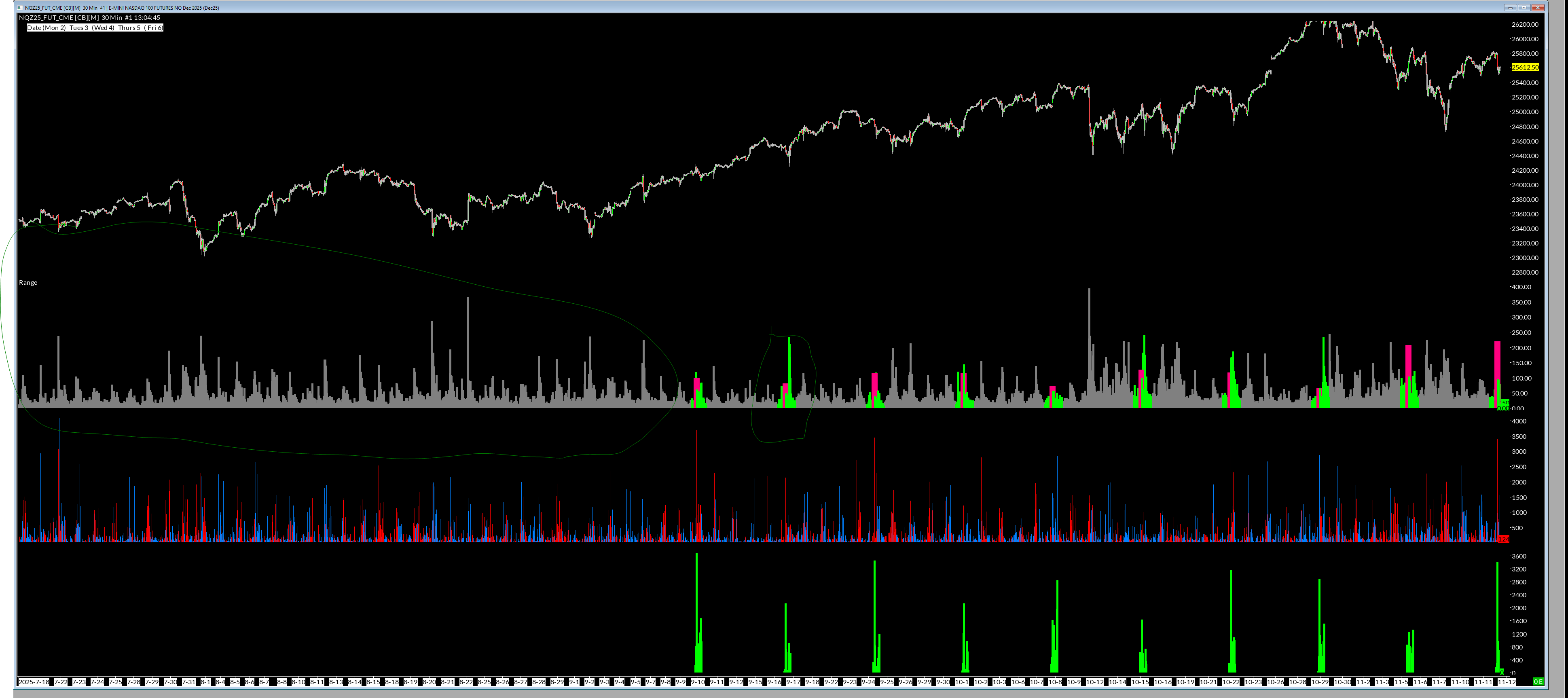 Hi, Was excited to hear this however I changed all the bars from 20,000 to 50,000 and its not working. For one you can see visually the bars are green and pink if for that day and time I immediately saw it wasn't working as they weren't drawn all the way back stops at exact same date. I downloaded new Sierra this morning it appears the delta is now showing up right for past contracts. I use date/time for that as well and show it on Subgraph4 but its not showing up either along with the range for days before 9/10. |