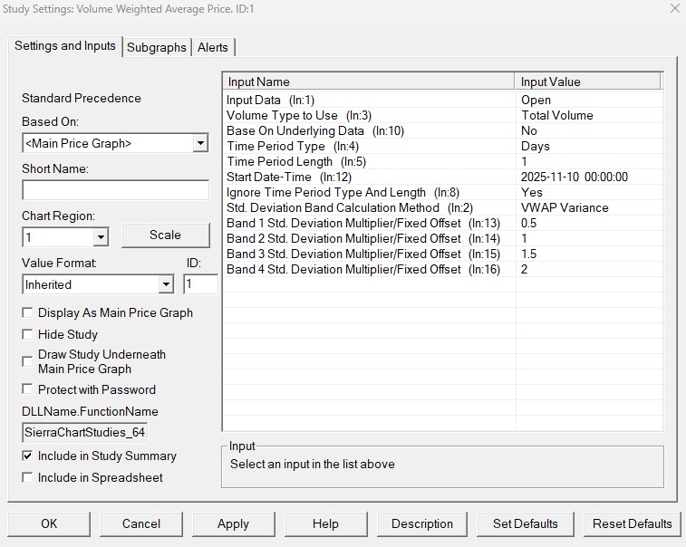 We are not understanding what exactly you are wanting, as we thought you were wanting an anchored VWAP that was set at a specific time. Please give us more information what you are wanting to accomplish. For the most reliable, advanced, and zero cost futures order routing, use the Teton service: Sierra Chart Teton Futures Order Routing |