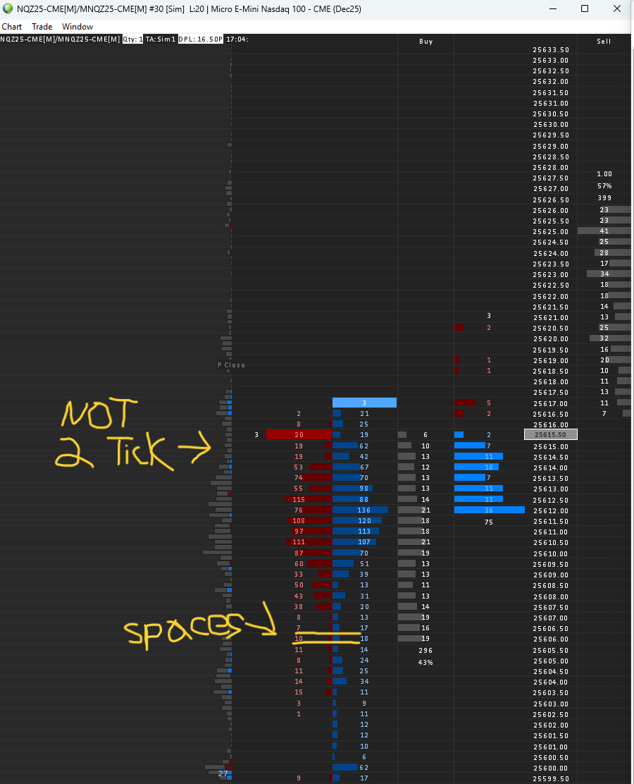 DOM Chart Combine 2 ticks - Spacing and Volume Profile Combine