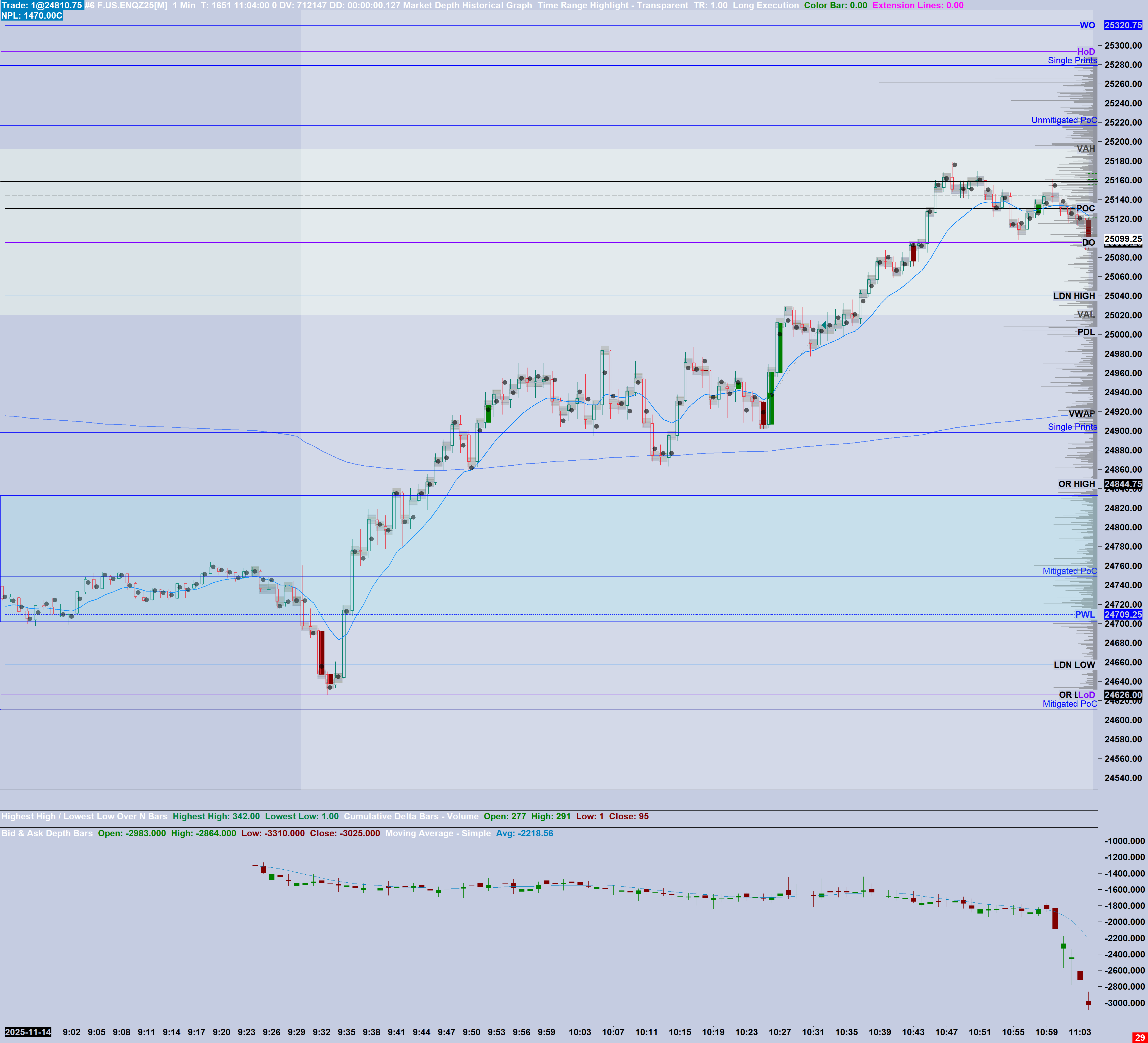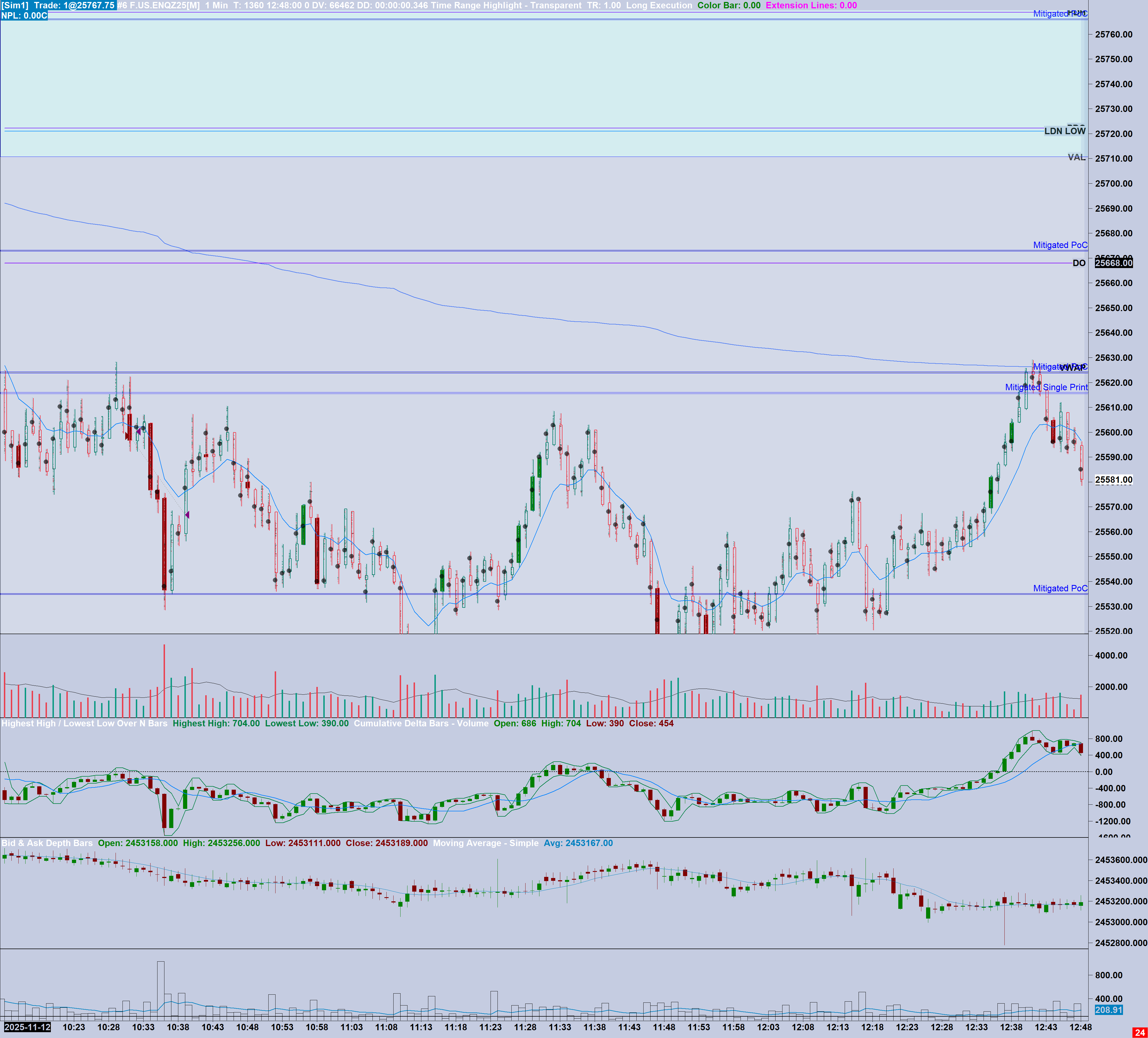 Hi Sierra team, The bid and ask depth bars (cumulative bid-ask) is printing radically different data, at least visually, between live and downloaded data. The live data tends to be wick orientated and sideways, whereas downloaded data tends to have no wicks and trend aggressively with little to no wicks. A few points to simplify problem solving: - I am subscribed to CME Professional Data for NQ and GC - I am subscribed to package 11 of Sierra Chart - I have searched through the support boards and cannot find a similar issue, hence the new ticket - I have deleted and downloaded depth data between continuous and non-continuous contracts with the same result - I have ensured that the calculation method is consistent Please assist with: - why this is happening? - What can one do to obtain consistent data and calculation for this indicator, particularly with relevance to backtesting and live trading? Screenshots of chart (Bid and Ask depth 4th chart window) Live Data - wicky and sideways https://www.sierrachart.com/image.php?Image=1763022920818.png Downloaded Data - full body closes, gaps and aggressively trendy https://www.sierrachart.com/image.php?Image=1763023158162.png THANK YOU |