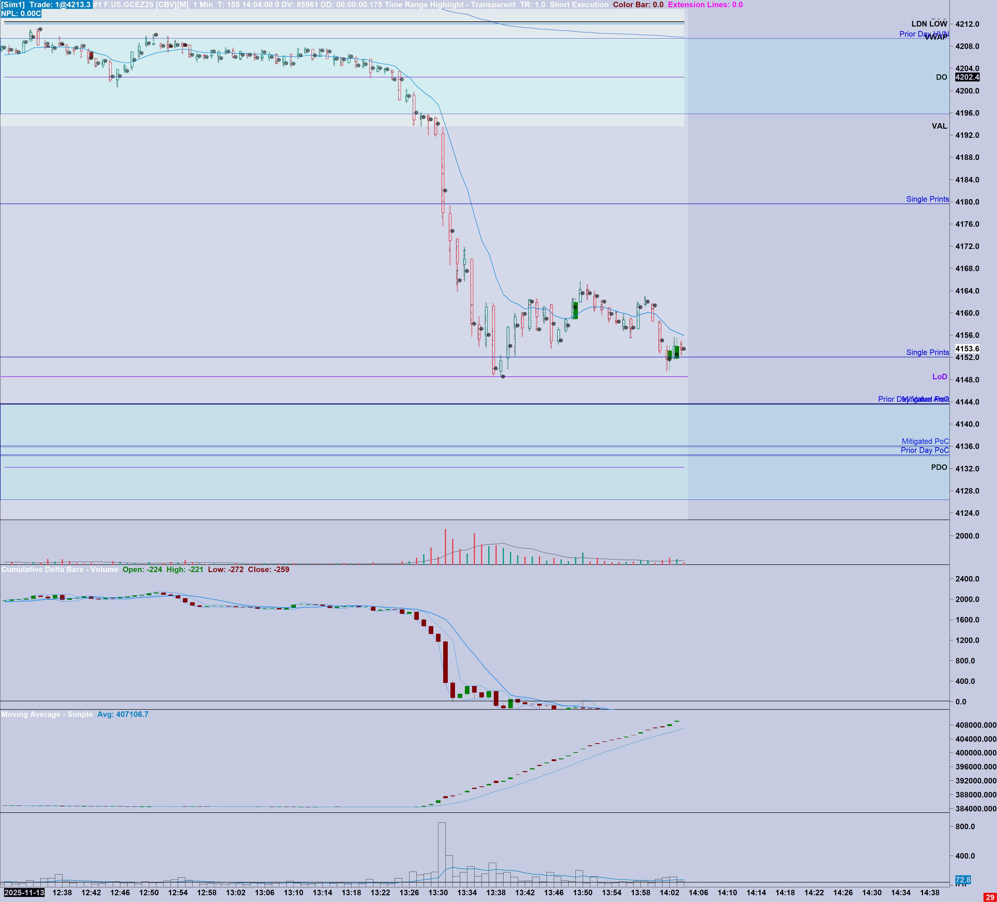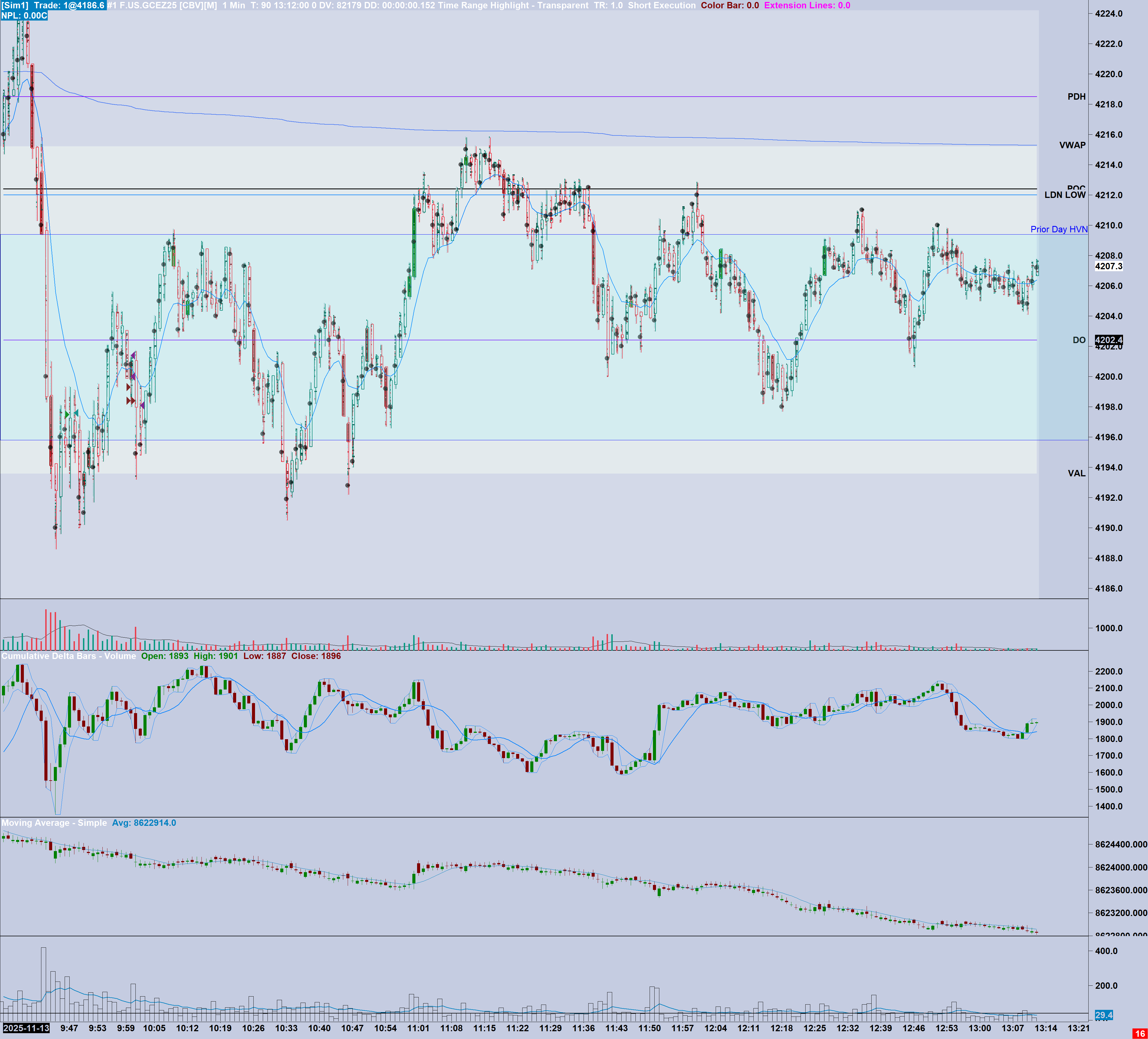 Hi John, Thanks for the speedy response. I have followed the instructions, see attached images presenting identical data: Live Data: https://www.sierrachart.com/image.php?Image=1763114382764.png Delete and Redownload: https://www.sierrachart.com/image.php?Image=1763115217169.png A few observations: - The data or calculation method that Sierra collects / uses when it is connected to live data is different from the data collected from the server when the indicator is not attached. - To put he idea into practice, I have chosen a day were the indicator was not connected to the chart and subsequently gone through the same process outlined in your prior message. Notice that the data remains unchanged similar to the above screenshots. Downloaded data (indicator not attached to chart on the day) https://www.sierrachart.com/image.php?Image=1763115538797.png Delete and Redownload: https://www.sierrachart.com/image.php?Image=176311566482.png - I also found the area where I logged off yesterday and noticed the data change again. Having deleted and redownloaded the data, I was again left with the contrast in data between live and downloaded. I take taken two screenshots as it is challenging to show both with the same detail given the difference in scaling / size. Live Data: https://www.sierrachart.com/image.php?Image=1763116464984.png Downloaded data (post log off) https://www.sierrachart.com/image.php?Image=1763116644581.png Happy to assist again where relevant. Date Time Of Last Edit: 2025-11-14 10:38:50