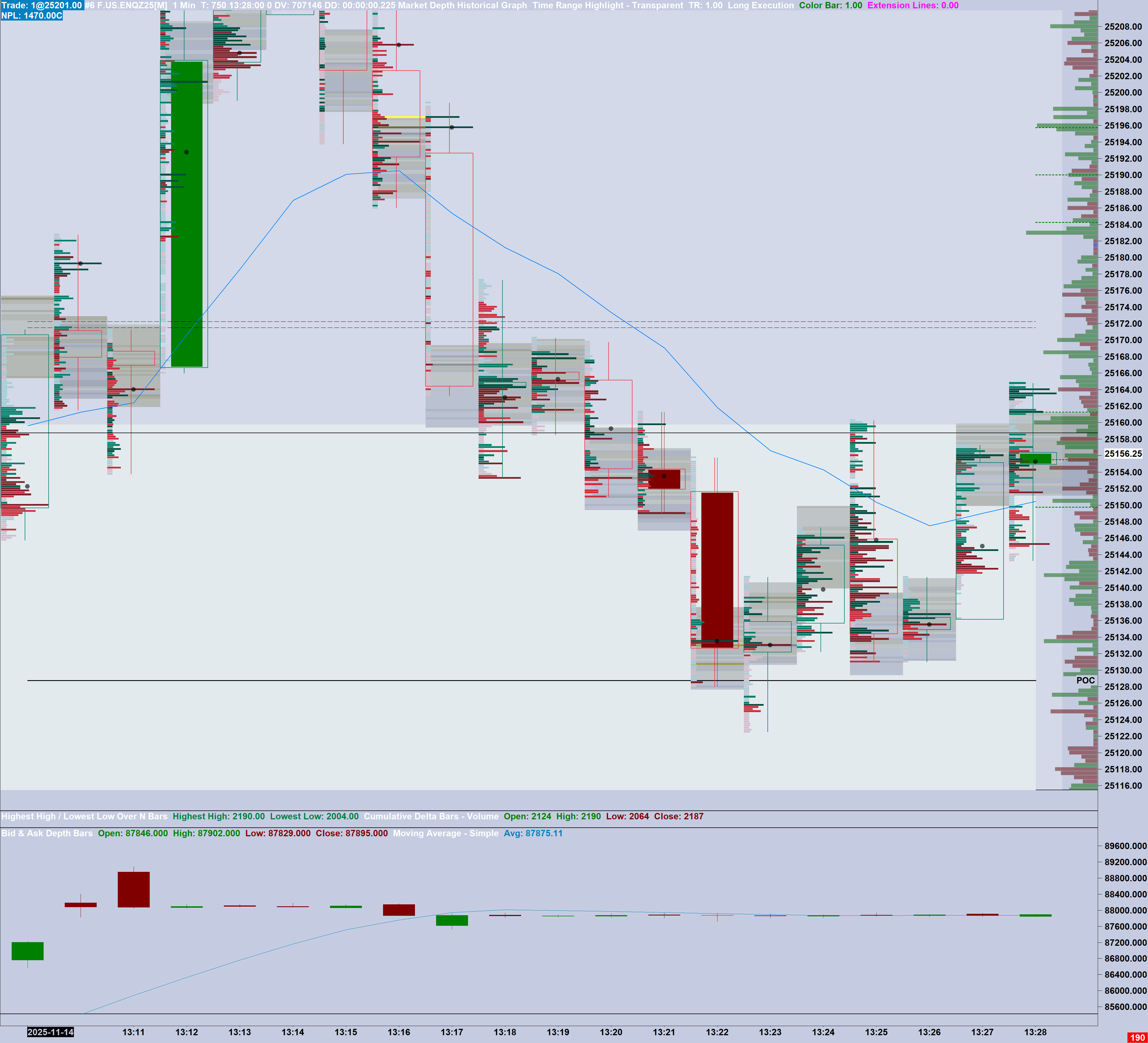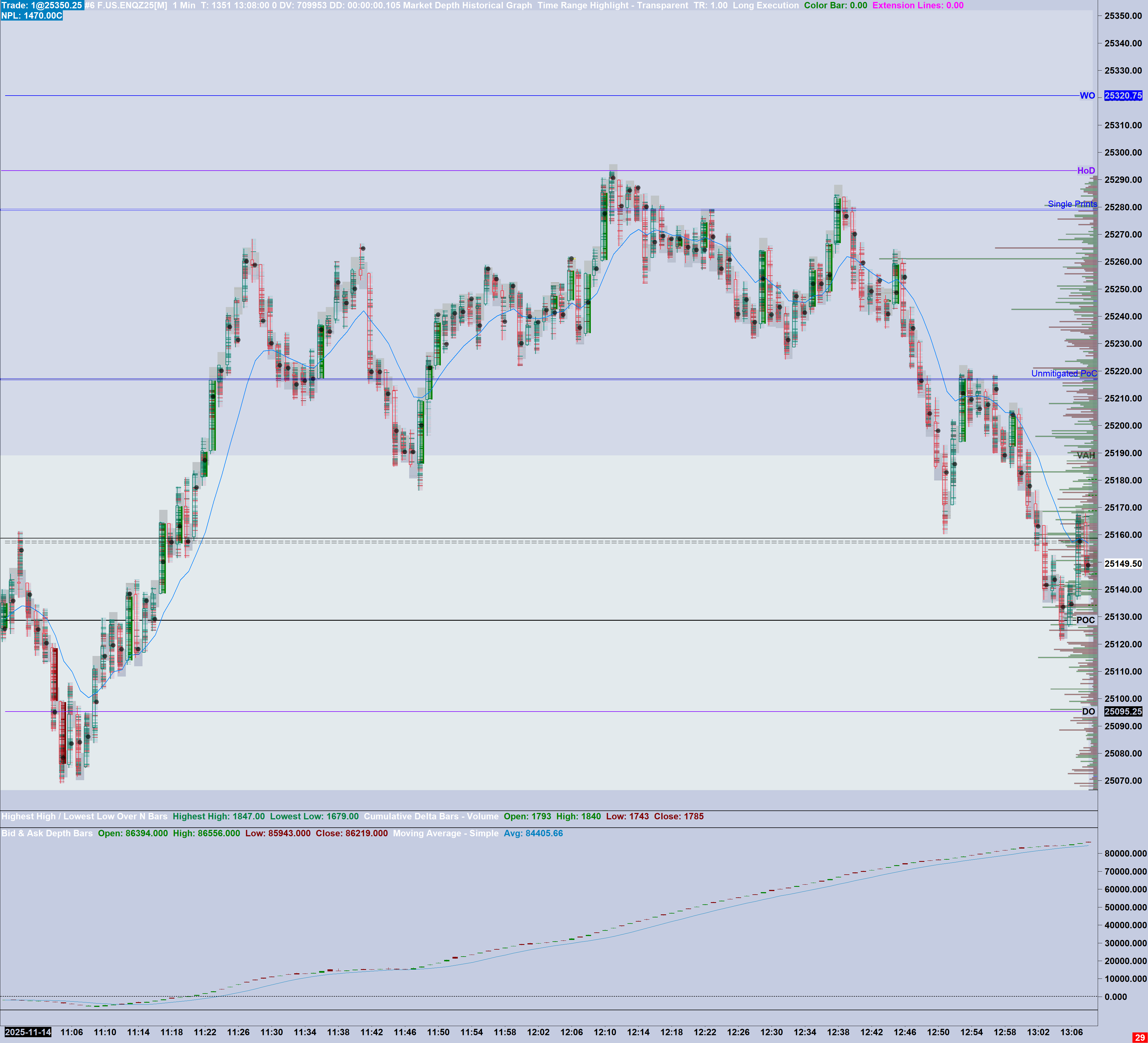 It just occurred to us that this may relate to the "Cumulative" calculation. This may inherently be just how this works. It would make sense, because this is the calculation: Running sum of (Total Ask Quantities - Total Bid Quantities) The opposite calculation with bid minus ask but effectively the same concept. Therefore, this calculation is definitively going to be affected by a changing the first Date-Time loaded in the chart. And also we do not see any bars, with this calculation at all: https://www.sierrachart.com/image.php?Image=17631508214.png So why you are seeing bars we do not know. There is of course a bar but the high and low are very close to each other. Our recommendation is to not use that calculation method. We will not be spending further time on this. This is a good example of when we add features for users, that inherently are difficult concepts to implement, that we then get burdened with more support which we do not want. So please do not use, the Cumulative calculation. Sierra Chart Support - Engineering Level Your definitive source for support. Other responses are from users. Try to keep your questions brief and to the point. Be aware of support policy: https://www.sierrachart.com/index.php?l=PostingInformation.php#GeneralInformation For the most reliable, advanced, and zero cost futures order routing, use the Teton service: Sierra Chart Teton Futures Order Routing Date Time Of Last Edit: 2025-11-14 20:22:23