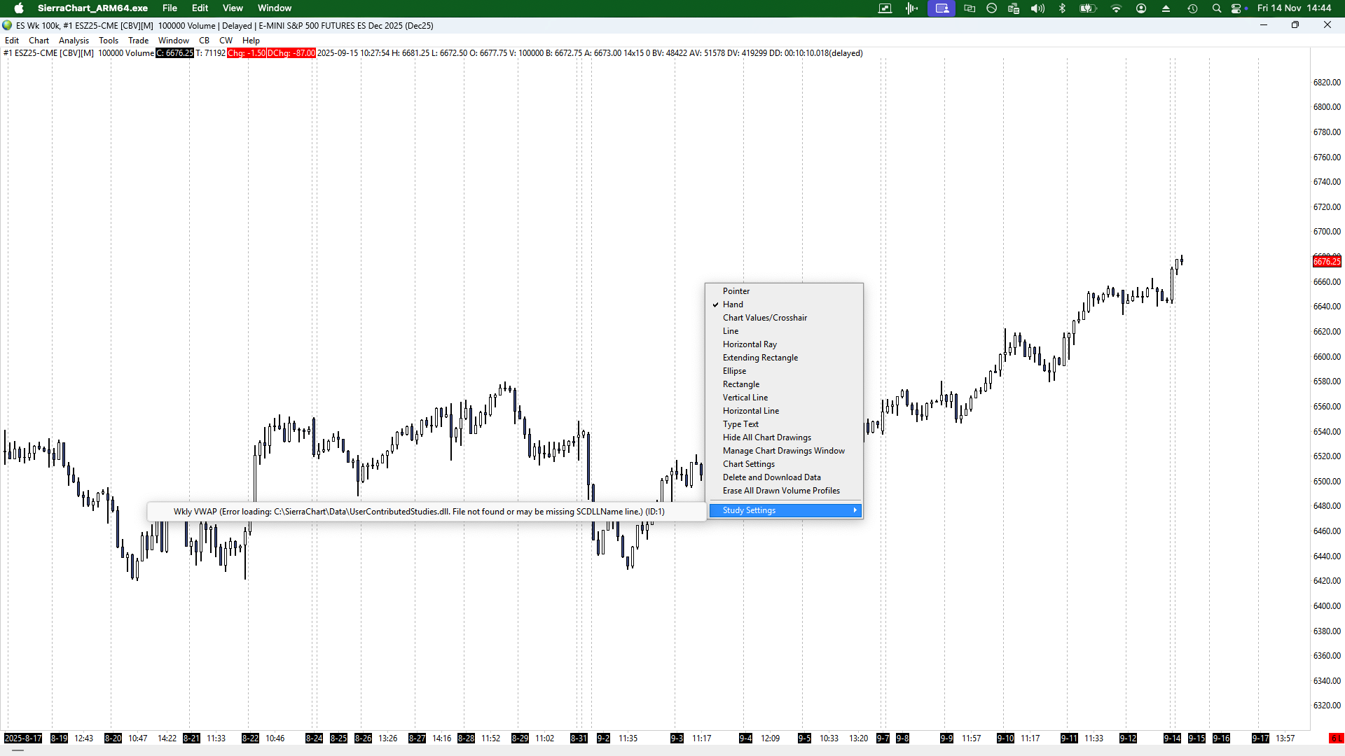 We wish we could give a good answer, and get these issues resolved, but the problem is these are just nonstandard set ups. In the case of issues with using custom studies, if we can get the source code for the custom studies assuming they are in the public domain and accessible to everyone, we can add them into Sierra Chart to make them easy to use in the ARM version. So try to get us to source code if it is in the public domain. Or if they are part of user contributed studies, we need to know the name of the study. We are getting a little confused because we are losing track of what are the current outstanding issues are and what issue each user is having. Sierra Chart Support - Engineering Level Your definitive source for support. Other responses are from users. Try to keep your questions brief and to the point. Be aware of support policy: https://www.sierrachart.com/index.php?l=PostingInformation.php#GeneralInformation For the most reliable, advanced, and zero cost futures order routing, use the Teton service: Sierra Chart Teton Futures Order Routing Date Time Of Last Edit: 2025-11-19 04:49:24