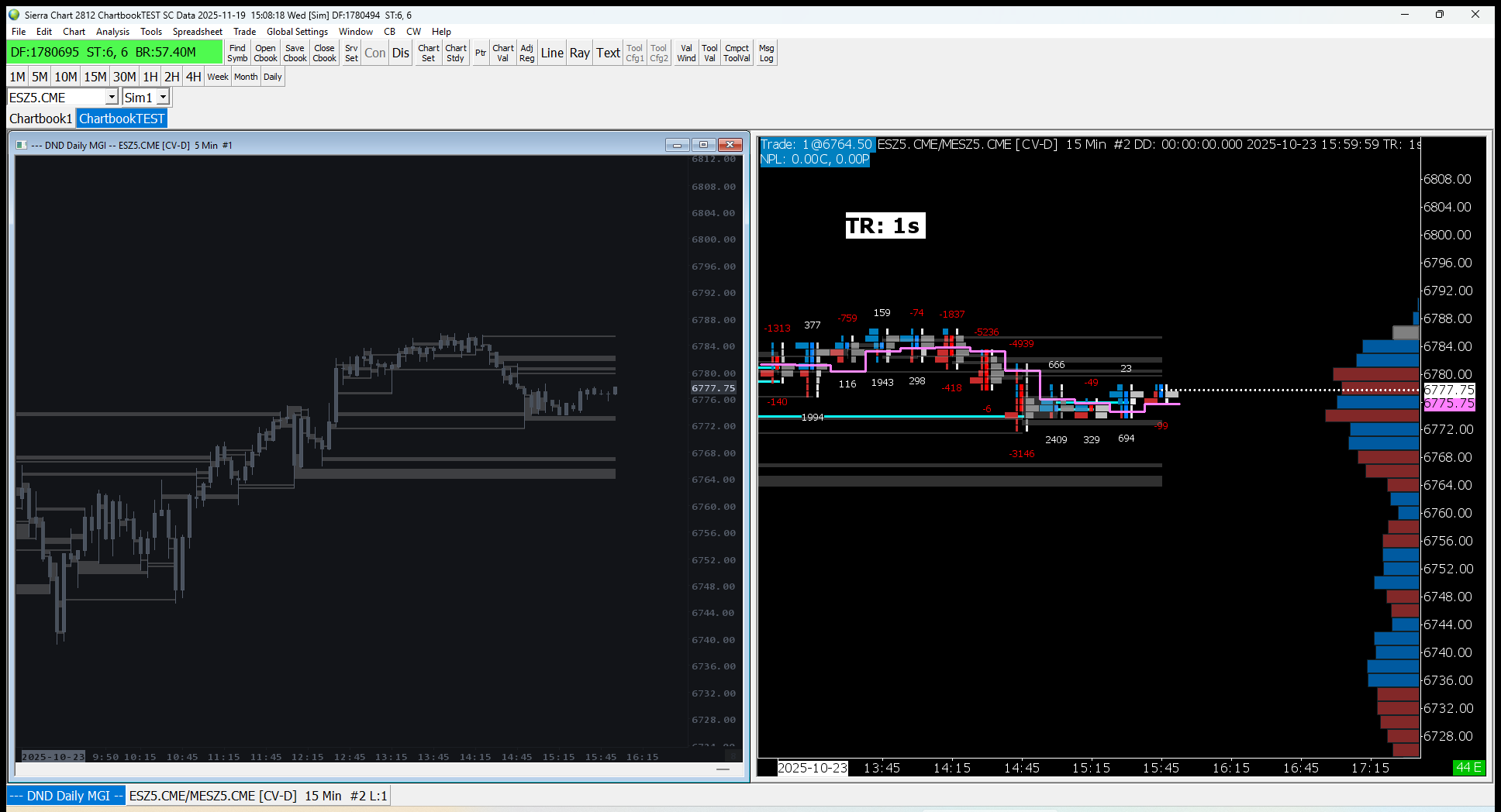 We are not seeing any issue with the overlay of the Extension Lines. We have attached an image of what we see when we open your Chartbook, and the lines are perfectly aligned. We do not know what you are referring to in terms of the 15 minute chart becoming white. We would need to see an image of this when it occurs. For the most reliable, advanced, and zero cost futures order routing, use the Teton service: Sierra Chart Teton Futures Order Routing |