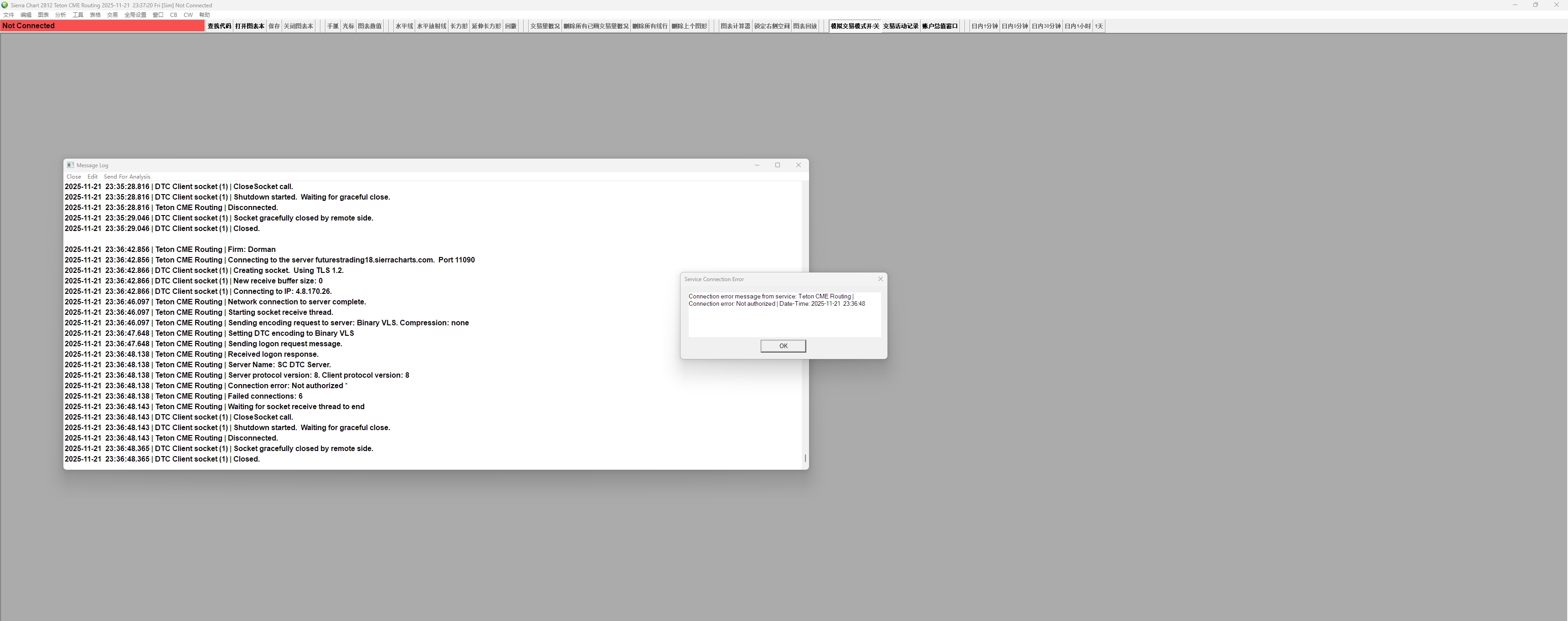 My version is the latest 2812, but recently when I try to view my trading activity log, it consistently fails to display my daily transactions. No matter how I select dates or clear the log, it still won't show them. Additionally, my account has been unable to connect to Sierra Chart lately. Is there an issue with your servers?