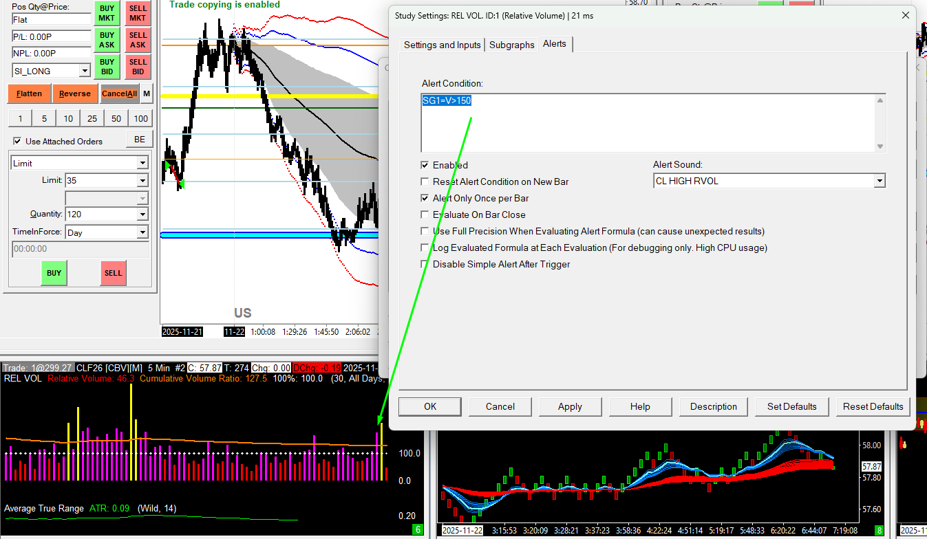 Your condition should be the following: =SG1 > 150 For the most reliable, advanced, and zero cost futures order routing, use the Teton service: Sierra Chart Teton Futures Order Routing |