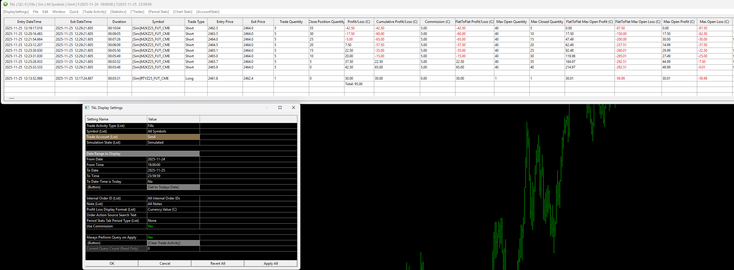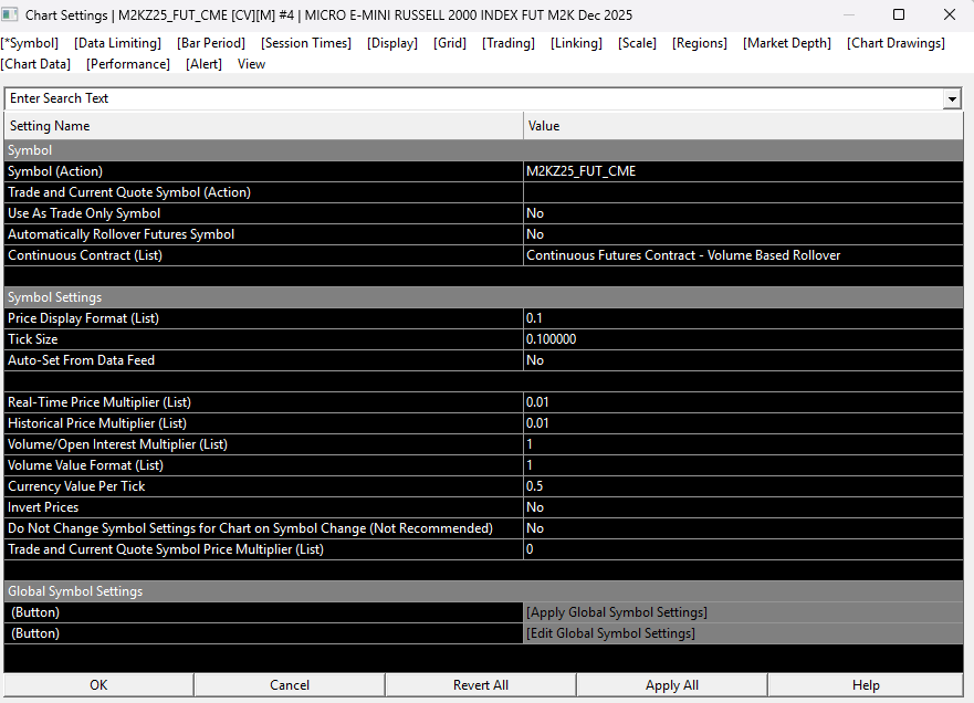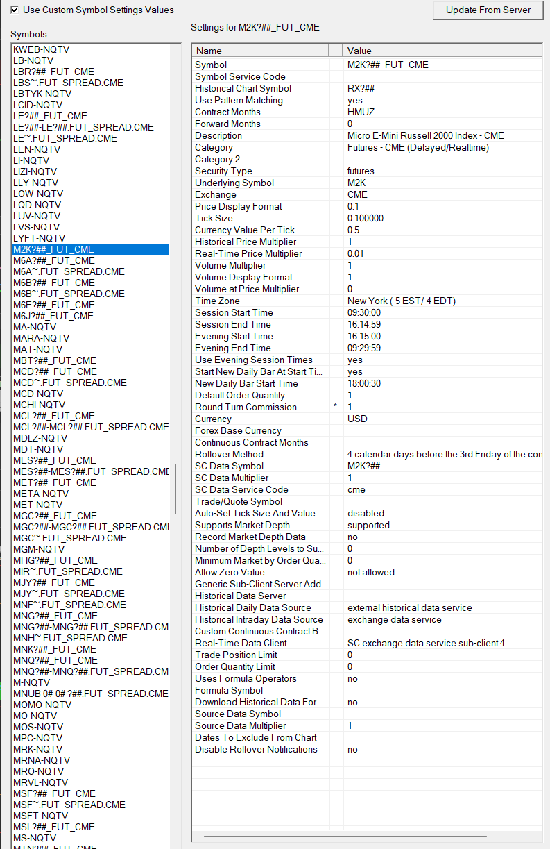 Hi, If I trade MNQ, the trade activity log and global profit/loss management correctly calculate at $0.50/tick ($2/point). However if I trade M2K, the trade activity log correctly shows $0.50/tick but the global profit/loss management is calculating at RTY values of $5/tick not $0.50. I can't see where/how global profit/loss is getting its values from. How is it possible for Trade Activity Log to be correct but Global Profit/Loss be getting a different value. Thanks |