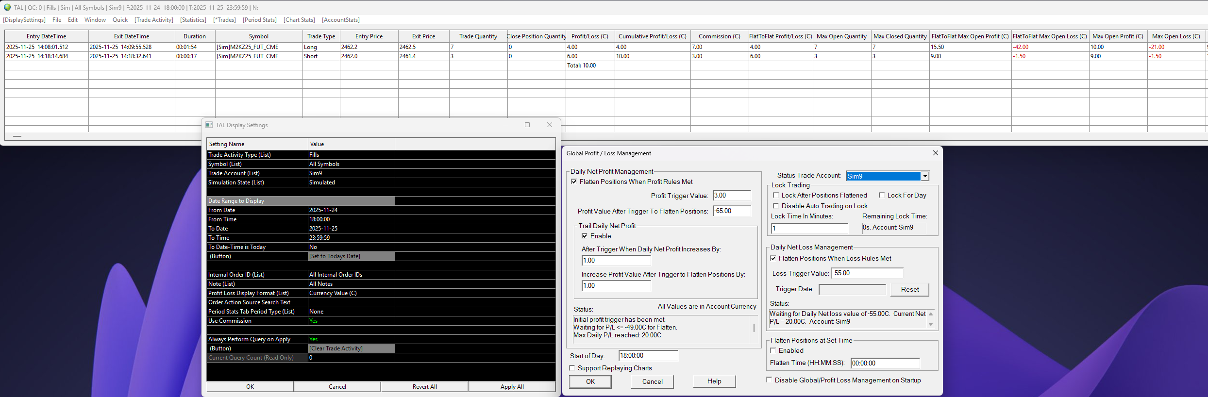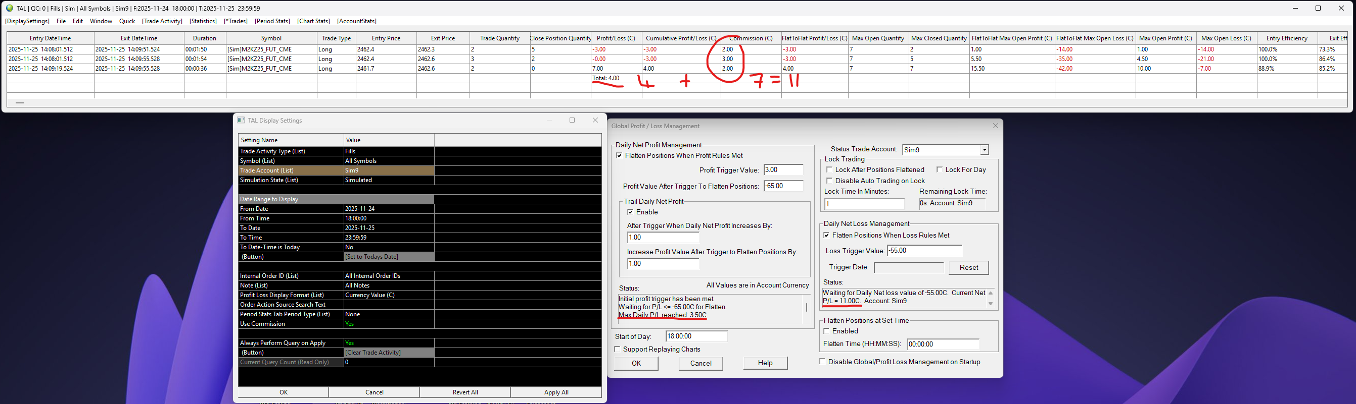 I don't know if this helps but maybe its an update issue. I did 2 trades, see each screenshot. After the first trade, the right hand side Daily Loss Management updates correctly but the Trail on the left doesn't. After the second trade they are back in alignment. Related - it seems these numbers don't include comms which can add up for intraday traders. Could we include comms or have an option to include comms since they are non-optional for us all? Hope it helps and thanks for looking into this. Date Time Of Last Edit: 2025-11-25 19:27:03
