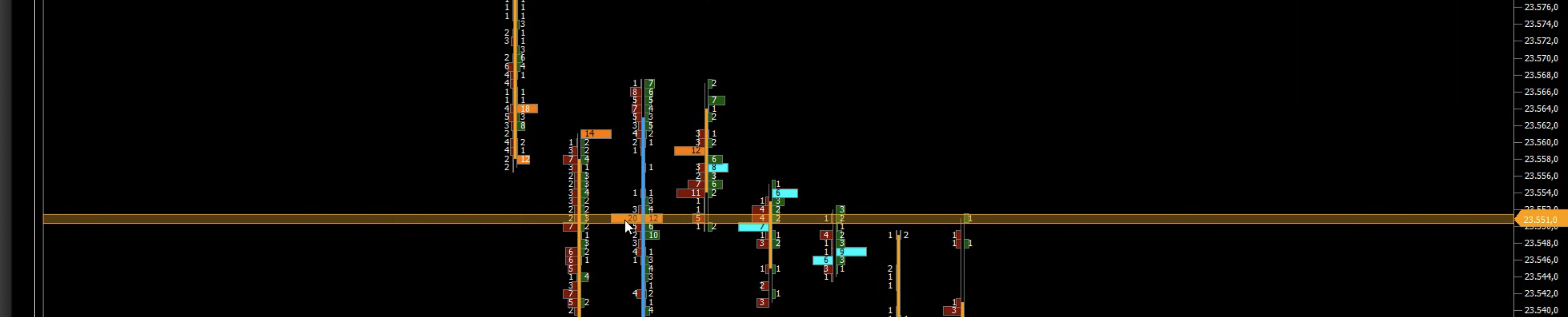 Thanks, super helpful. Is there also an option to have a line, like the horizontal line, take the width of the entire tick-row? In this case it's set to 2px fixed, but since it crosses and divides in half the volume numbers as you can see from the screenshot, it would be optimal if the line would always span the height of the tick bar, so that I can fill it with a solid color and give it transparency, like in this other attached screenshot (from another software).
