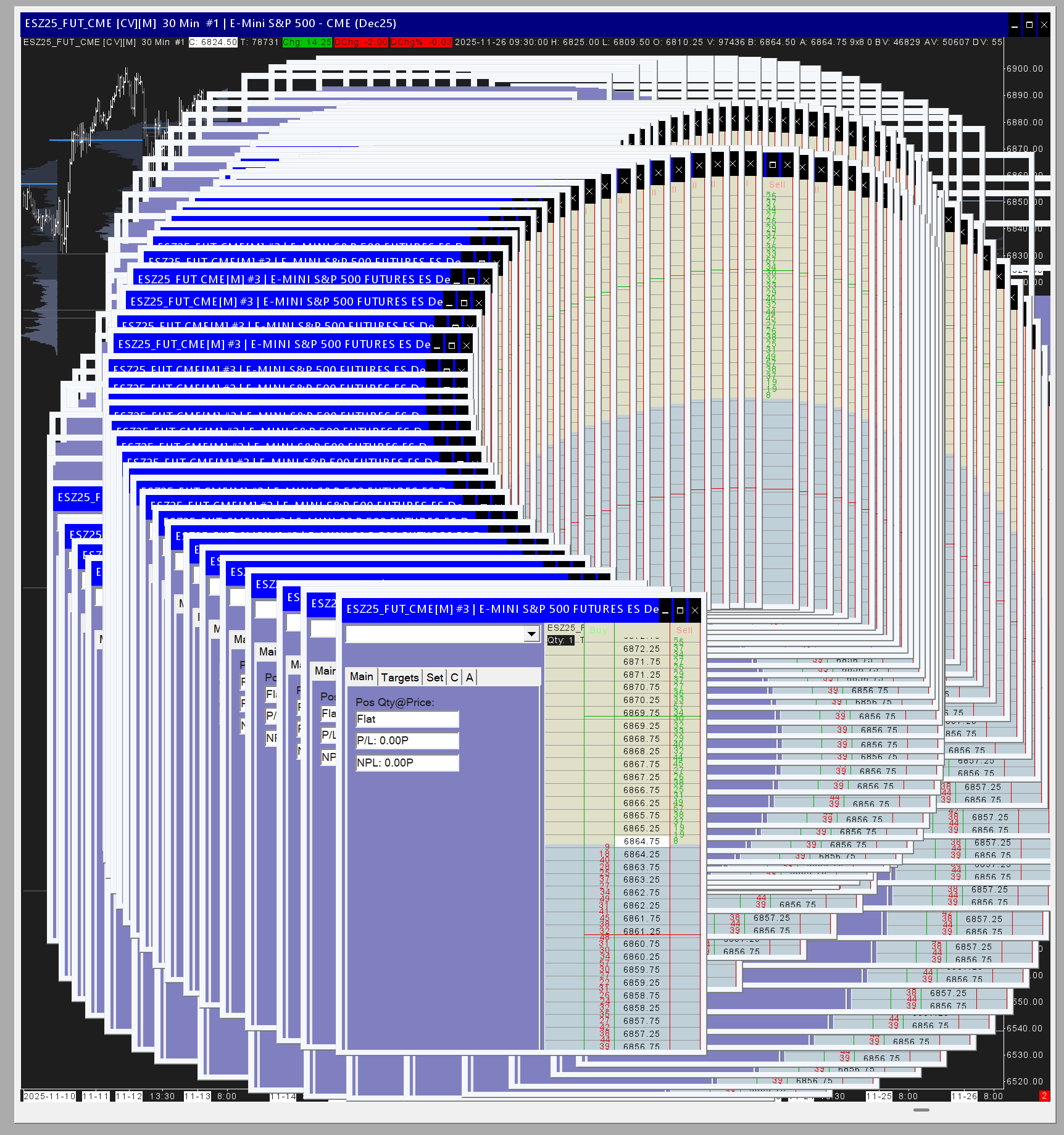 (1) Ctrl-Insert does not Recalculate only, it appears to Reload and Recalculate (2) Maybe related to the crosshair issue in Chart Value Tool v2821 but dragging one of the new "Sierra Title Bar Windows" (like the DOM) over a chart causes severe shadows and slow repaints kind of like when you win the old Solitare game. (OpenGL enabled) Dragging a standard window like Time and Sales does not. Dragging it fast enough shows a slight lag rarely, but not like the first example. (See attached image) (3) No solid repro, but saw this in my message log when I first clicked the menu to show the DOM: 2025-12-04 15:15:50.008 | ESZ25_FUT_CME #2 | Reloading chart. 2025-12-04 15:15:50.008 | ESZ25_FUT_CME #2 | StartDateTimeForLoadingOrderFills: 2024-11-27 00:00:00 2025-12-04 15:15:50.008 | ESZ25_FUT_CME #2 | Chart data loading complete. 2025-12-04 15:15:50.037 | c_BitmapGL::c_BitmapGL, allocate bitmap returns error: INVALID VALUE Number in queue: 0, Line: 260 at E:\UserData\Anthony\SCProject\SCReleaseBuild\Internal Libraries\SCGraphics\Source\BitmapGL.cpp 2025-12-04 15:15:50.037 | OpenGL: cannot allocate texture * 2025-12-04 15:15:50.050 | c_BitmapGL::c_BitmapGL, allocate bitmap returns error: INVALID VALUE Number in queue: 0, Line: 260 at E:\UserData\Anthony\SCProject\SCReleaseBuild\Internal Libraries\SCGraphics\Source\BitmapGL.cpp 2025-12-04 15:15:50.050 | OpenGL: cannot allocate texture * 2025-12-04 15:15:50.063 | c_BitmapGL::c_BitmapGL, allocate bitmap returns error: INVALID VALUE Number in queue: 0, Line: 260 at E:\UserData\Anthony\SCProject\SCReleaseBuild\Internal Libraries\SCGraphics\Source\BitmapGL.cpp 2025-12-04 15:15:50.063 | OpenGL: cannot allocate texture * 2025-12-04 15:15:50.075 | c_BitmapGL::c_BitmapGL, allocate bitmap returns error: INVALID VALUE Number in queue: 0, Line: 260 at E:\UserData\Anthony\SCProject\SCReleaseBuild\Internal Libraries\SCGraphics\Source\BitmapGL.cpp 2025-12-04 15:15:50.075 | OpenGL: cannot allocate texture * 2025-12-04 15:15:50.086 | c_BitmapGL::c_BitmapGL, allocate bitmap returns error: INVALID VALUE Number in queue: 0, Line: 260 at E:\UserData\Anthony\SCProject\SCReleaseBuild\Internal Libraries\SCGraphics\Source\BitmapGL.cpp 2025-12-04 15:15:50.086 | OpenGL: cannot allocate texture * 2025-12-04 15:15:50.099 | c_BitmapGL::c_BitmapGL, allocate bitmap returns error: INVALID VALUE Number in queue: 0, Line: 260 at E:\UserData\Anthony\SCProject\SCReleaseBuild\Internal Libraries\SCGraphics\Source\BitmapGL.cpp 2025-12-04 15:15:50.099 | OpenGL: cannot allocate texture * 2025-12-04 15:15:50.110 | c_BitmapGL::c_BitmapGL, allocate bitmap returns error: INVALID VALUE Number in queue: 0, Line: 260 at E:\UserData\Anthony\SCProject\SCReleaseBuild\Internal Libraries\SCGraphics\Source\BitmapGL.cpp 2025-12-04 15:15:50.110 | OpenGL: cannot allocate texture * 2025-12-04 15:15:50.123 | c_BitmapGL::c_BitmapGL, allocate bitmap returns error: INVALID VALUE Number in queue: 0, Line: 260 at E:\UserData\Anthony\SCProject\SCReleaseBuild\Internal Libraries\SCGraphics\Source\BitmapGL.cpp 2025-12-04 15:15:50.123 | OpenGL: cannot allocate texture * 2025-12-04 15:15:50.135 | c_BitmapGL::c_BitmapGL, allocate bitmap returns error: INVALID VALUE Number in queue: 0, Line: 260 at E:\UserData\Anthony\SCProject\SCReleaseBuild\Internal Libraries\SCGraphics\Source\BitmapGL.cpp 2025-12-04 15:15:50.135 | OpenGL: cannot allocate texture * 2025-12-04 15:15:50.149 | c_BitmapGL::c_BitmapGL, allocate bitmap returns error: INVALID VALUE Number in queue: 0, Line: 260 at E:\UserData\Anthony\SCProject\SCReleaseBuild\Internal Libraries\SCGraphics\Source\BitmapGL.cpp 2025-12-04 15:15:50.149 | OpenGL: cannot allocate texture * 2025-12-04 15:15:50.160 | c_BitmapGL::c_BitmapGL, allocate bitmap returns error: INVALID VALUE Number in queue: 0, Line: 260 at E:\UserData\Anthony\SCProject\SCReleaseBuild\Internal Libraries\SCGraphics\Source\BitmapGL.cpp 2025-12-04 15:15:50.160 | OpenGL: cannot allocate texture * 2025-12-04 15:15:50.172 | c_BitmapGL::BindFrameBufferObjectAndViewport returns error: INVALID VALUE Number in queue: 0, Line: 524 at E:\UserData\Anthony\SCProject\SCReleaseBuild\Internal Libraries\SCGraphics\Source\BitmapGL.cpp 2025-12-04 15:15:52.176 | Requesting market depth updates for: ESZ25_FUT_CME if supported. NumLevels=100 2025-12-04 15:15:52.177 | Denali Data Feed (Market Orders Data) | Connecting to the server ds26.sierracharts.com. Port 10060 (4) When changing the font size and/or font on a custom study that uses DrawTextAt(), I saw this new message in the log: 2025-12-04 15:50:33.316 | c_BitmapGL::BindFrameBufferObjectAndViewport returns error: INVALID VALUE Number in queue: 0, Line: 524 at E:\UserData\Anthony\SCProject\SCReleaseBuild\Internal Libraries\SCGraphics\Source\BitmapGL.cpp 2025-12-04 15:51:00.191 | c_BitmapGL::c_BitmapGL, allocate bitmap returns error: INVALID VALUE Number in queue: 0, Line: 260 at E:\UserData\Anthony\SCProject\SCReleaseBuild\Internal Libraries\SCGraphics\Source\BitmapGL.cpp 2025-12-04 15:51:00.191 | OpenGL: cannot allocate texture * 2025-12-04 15:51:00.204 | c_BitmapGL::c_BitmapGL, allocate bitmap returns error: INVALID VALUE Number in queue: 0, Line: 260 at E:\UserData\Anthony\SCProject\SCReleaseBuild\Internal Libraries\SCGraphics\Source\BitmapGL.cpp 2025-12-04 15:51:00.204 | OpenGL: cannot allocate texture * 2025-12-04 15:51:00.208 | c_BitmapGL::BindFrameBufferObjectAndViewport returns error: INVALID VALUE Number in queue: 0, Line: 524 at E:\UserData\Anthony\SCProject\SCReleaseBuild\Internal Libraries\SCGraphics\Source\BitmapGL.cpp |