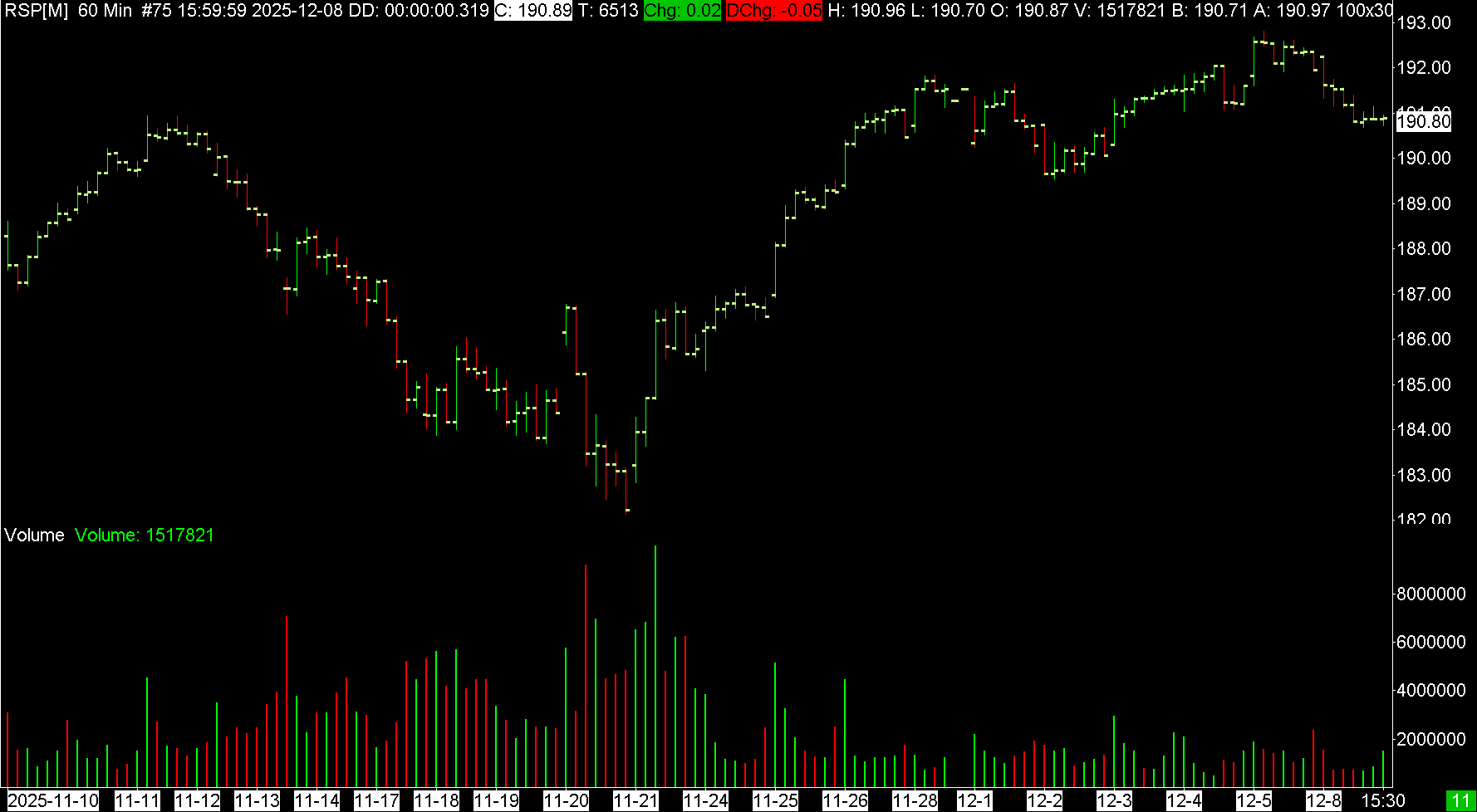 Hi Is the Invesco S&P 500 Equal Weight ETF (RSP) available as a symbol on Sierra Chart? I searched the symbols for RSP and skimmed over any using ETF as a search and it did not find it. |