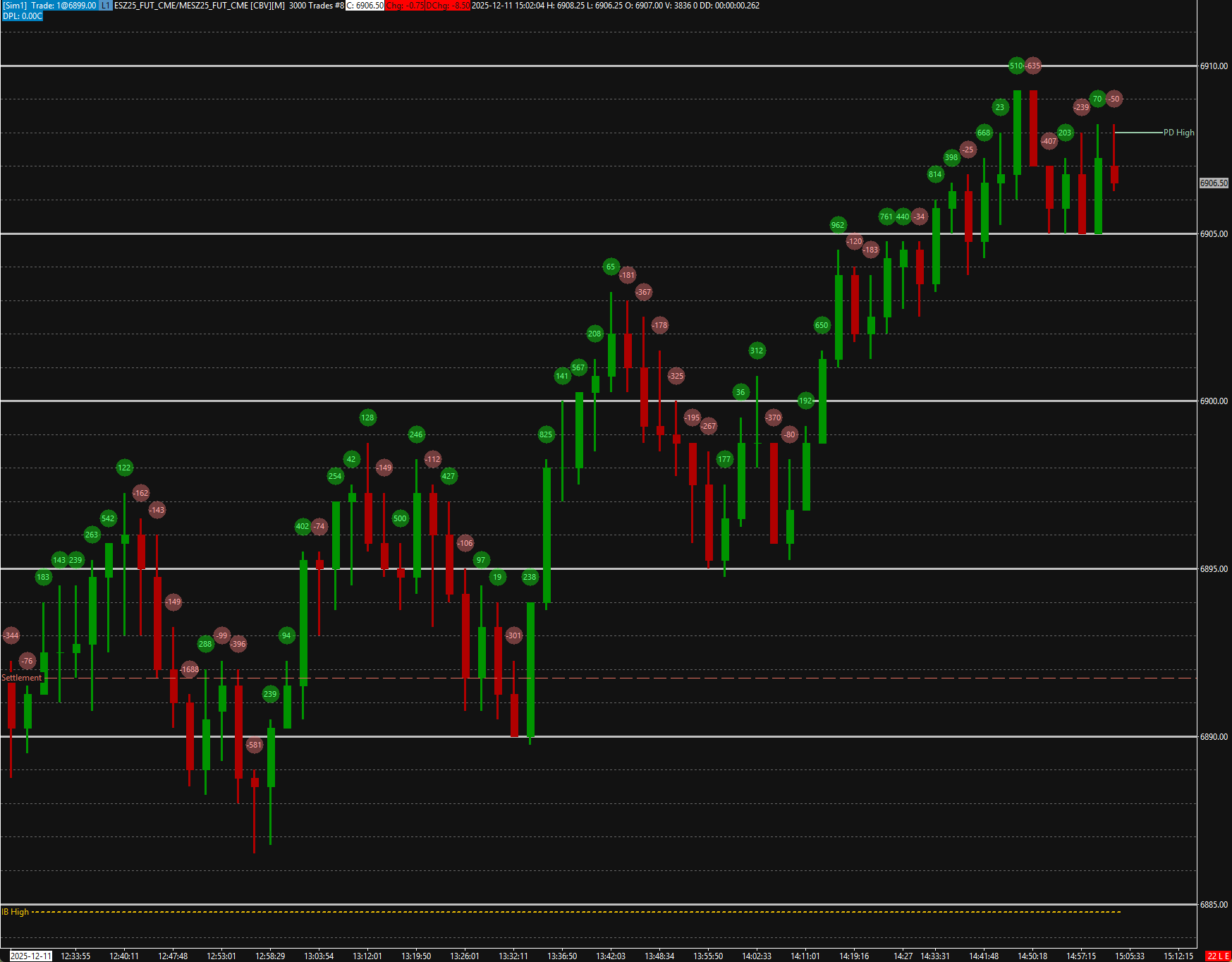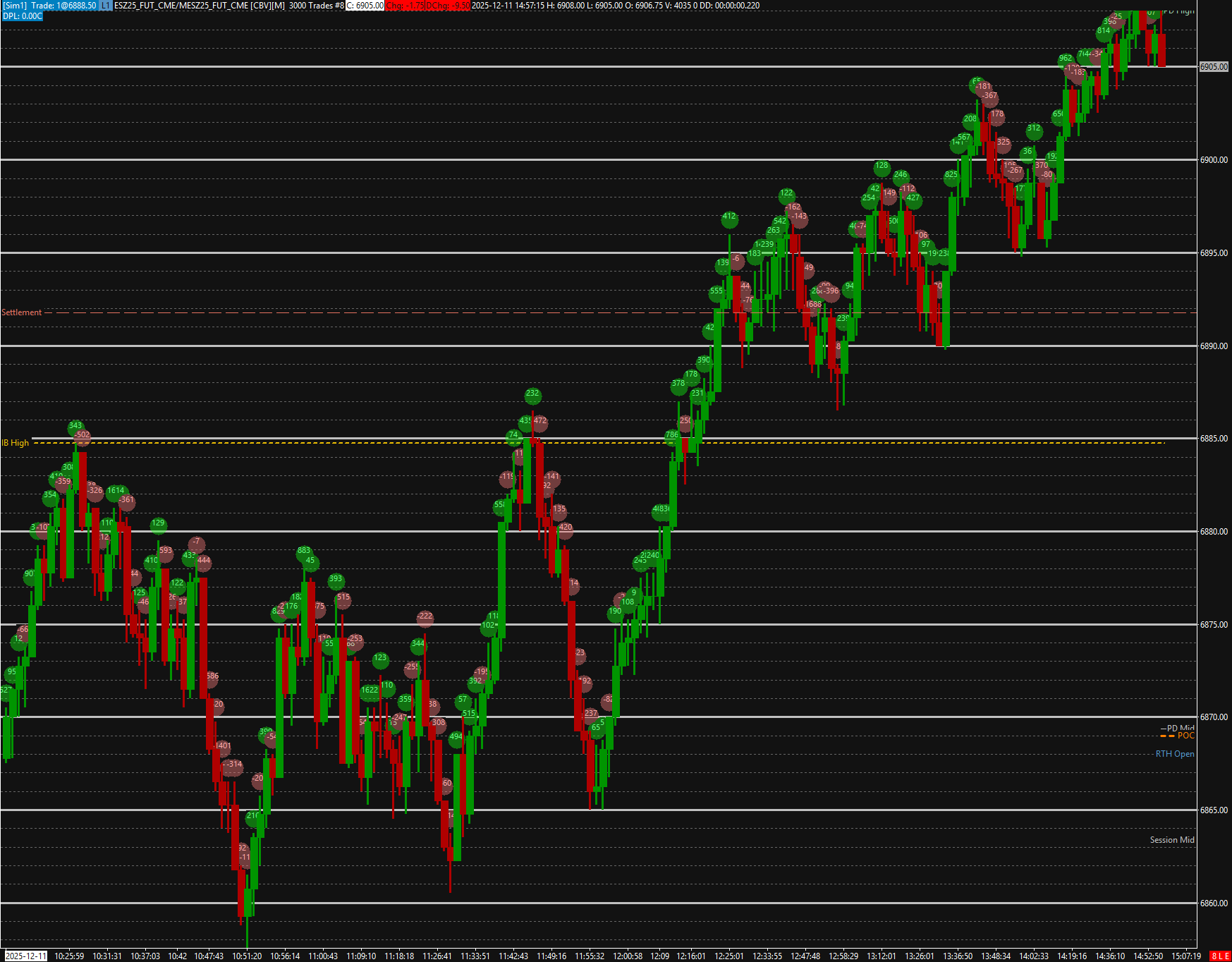 This is the basic layout. Two images, one with the price intervals scrunched and the other to show what's there. If I could render the delta text vertically, I could show so much more price action in the window. https://www.sierrachart.com/image.php?Image=1765549971607.png https://www.sierrachart.com/image.php?Image=1765550151150.png |