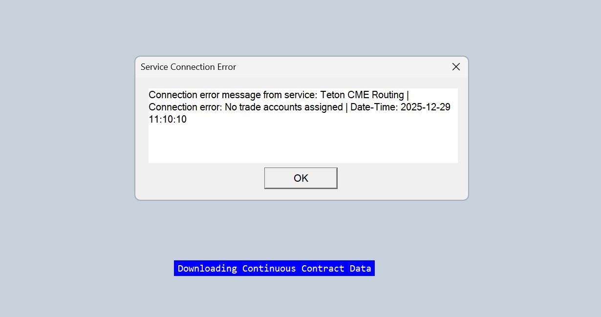 The error you are getting is stating that your setup for the Teton Order Routing has not been completed. Please check with Edge Clear and see if your account is properly setup. If not, then make sure they inform you when it is complete. If they state everything is setup properly, then have them check to ensure that your Account Name was entered properly. Your Sierra Chart Account Name is what is used to tie your accounts together. If you continue to have an issue after this, then please let us know. For the most reliable, advanced, and zero cost futures order routing, use the Teton service: Sierra Chart Teton Futures Order Routing |