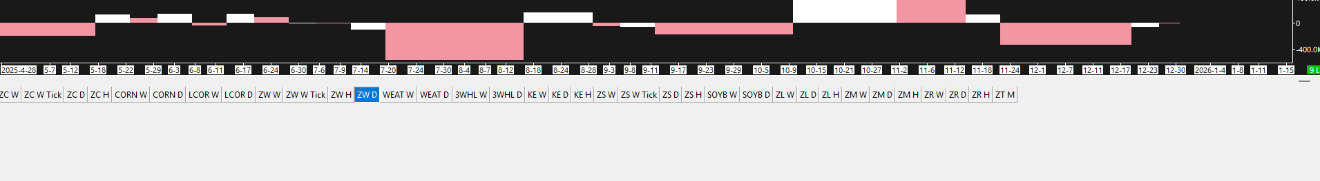 Hi I have the chart tabs set to "wrap" so they are shown over many rows. I have one chartbook which has many tabs and it expands the bar/zone with chart tabs to quite a large "wrapped" size. If I select that large chartbook, and then I select another chartbook with a smaller set of chart tabs that only fills a single row or two, the zone that contains the chart tabs stays enlarged, it doesn't resize to the new set of tabs. Please refer to screenshot. |