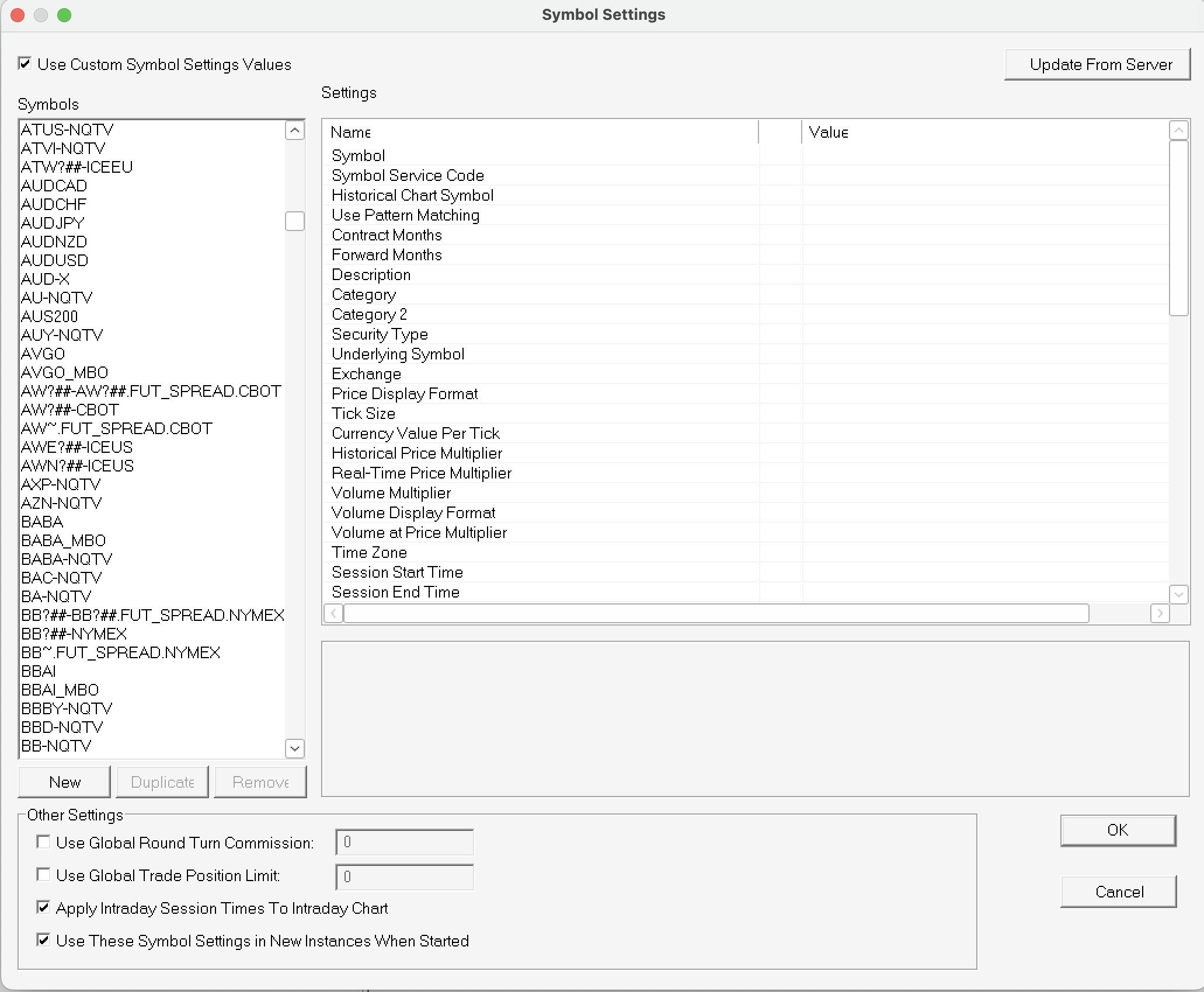 Thanks for sharing these documents. I followed the steps for "Denali Exchange Data Feed: U.S. Equities Consolidated Tape with NASDAQ TotalView" link. I added the "_MBO" at the end of each symbol and also added the symbol in the symbol settings page (attached picture). Problem #1: I am having some problems that do not have a pattern to it. Some symbols load with the "_MBO" extension while some do not (attached picture). You can see the sumbol 'ASML_MBO' does not load for some reason but the 'AVGO_MBP' for exmaple, loads completely fine. Problem #2: Even when AVGO_MBO loads completely fine, it does not show orders or data in the DOM chart on the very right. I am doing something wrong here please guide me. |